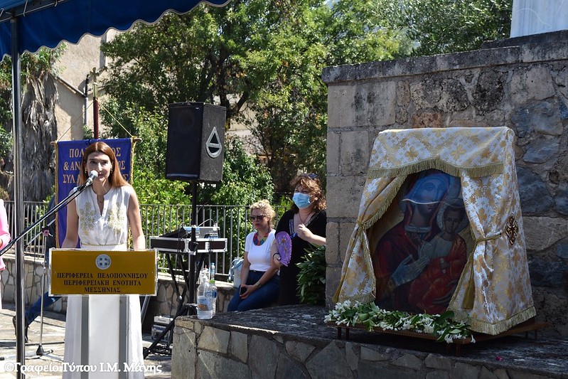 Ο πανηγυρικός της ημέρας εκφωνήθηκε από την πολιτική επιστήμονα, δημοσιογράφο και αντιπρόεδρο του Περιφερειακού Τμήματος Καλαμάτας του Ελληνικού Ερυθρού Σταυρού κ. Μαριλένα Γυφτέα.