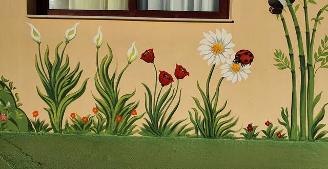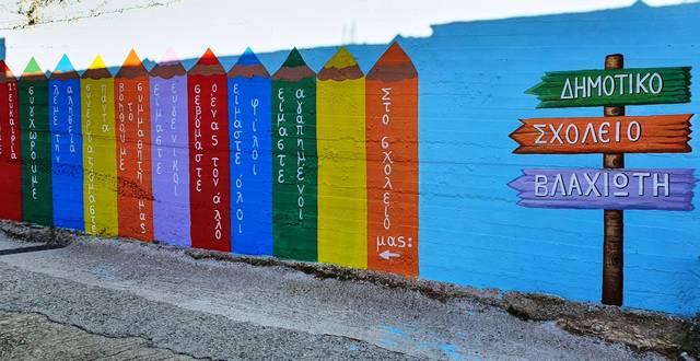 «Άχρωμοι» εξωτερικοί τοίχοι, μέσα από υπέροχες ζωγραφιές με παιδικά σχέδια κι έντονα χρώματα, αποκτούν άλλο ύφος και υπόσταση και «μεταμορφώνονται» σε επιφάνειες που μαγνητίζουν τα βλέμματα, γοητεύουν και «γεννούν» συναισθήματα ευφορίας σε μικρούς και μεγάλους.