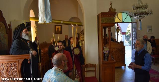 Ο Ιεράρχης Μάνης τέλεσε τη Θεία Λειτουργία, συμπαραστατούμενος από τον εφημέριο του ναού π. Ηλία Λύρα και κήρυξε τον Θείο Λόγο, ερμηνεύοντας την παραβολή του πλουσίου και του πτωχού Λαζάρου, ως περιγράφεται στο κατά Λουκάν Ευαγγέλιο (κεφ. 16 αι στίχοι 19-31).