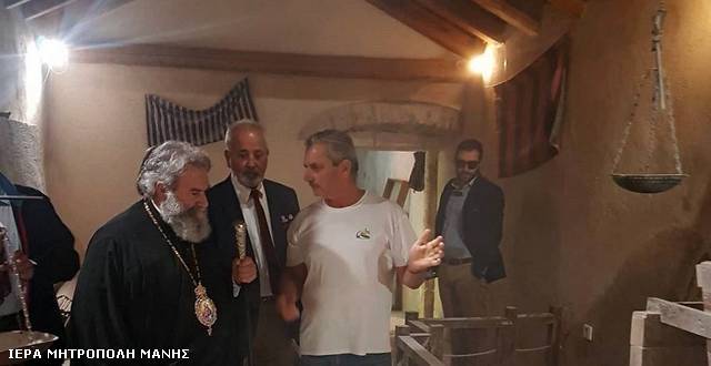 Μετά το πέρας της λειτουργίας είχε την ευκαιρία να γνωρίσει την ιστορία του χωριού και να συνομιλήσει με τους κατοίκους του, ανάμεσα στους οποίους και ο κ. Γεώργιος Μαρουλάκος, ο οποίος επιτελεί σπουδαίο ιεραποστολικό έργο, σε συνεργασία με ιερές μητροπόλεις, μεταξύ των οποίων και της Μάνης και τον οποίο ο σεβασμιώτατος κ. Χρυσόστομος Γ΄ τον ευχαρίστησε και τον επαίνεσε δεόντως.