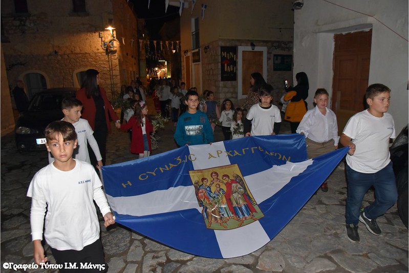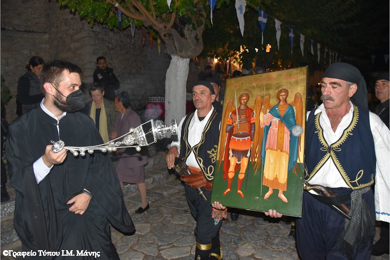 Πλήθος Μανιατών συμμετείχε τόσο στον πανηγυρικό εσπερινό όσο και στη λιτανεία με σκοπό να λάβει την χάρη και ευλογία των Ασωμάτων Αγγέλων.