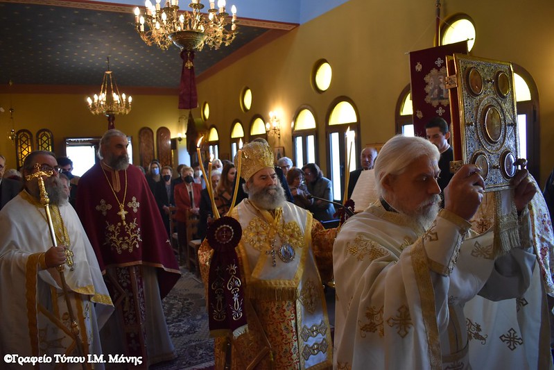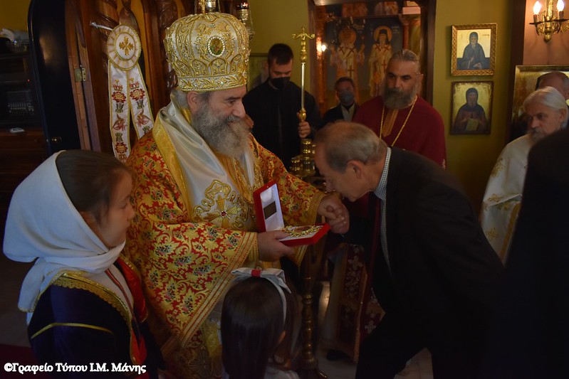 Μετά το πέρας της Λειτουργίας, στην οποία συμμετείχαν ιερείς της Μάνης, ο κ. Χρυσόστομος Γ΄ δέχθηκε τις ευχές των πιστών.