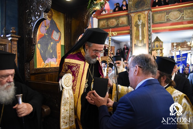 Εν συνεχεία, κλήρος και λαός, μετέβησαν στον Μητροπολιτικό Ναό της Αγίας Κυριακής, όπου πραγματοποιήθηκε η ακολουθία της ενθρονίσεως παρουσία του μακαριωτάτου Αρχιεπισκόπου Αθηνών και πάσης Ελλάδος κ. Ιερωνύμου. Ο αρχιγραμματέας της Ιεράς Συνόδου, θεοφιλ. Επίσκοπος Ωρεών κ. Φιλόθεος ανέγνωσε την εγκύκλιο της Συνόδου και το Προεδρικό Διάταγμα περί εκλογής, αναγνωρίσεως και καταστάσεως του νέου Μητροπολίτη.