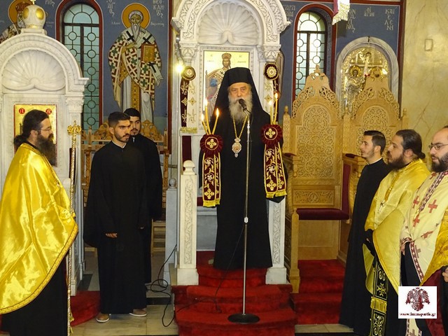 Κατά τη διάρκεια του εσπερινού έγινε η ενθρόνιση της ιερής εικόνας στον σολέα του ναού, ενώ εψάλησαν τα μακαριστήρια του Οσίου Νίκωνος από τον σεβασμιώτατο, τους ιερείς, τους ιεροψάλτες και το εκκλησίασμα.