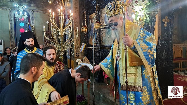 Η τρίτη χαρά είχε να κάνει με την χειροθεσία σε Αναγνώστη ενός ευσεβή νέου από τα Περιβόλια, του μαθητή Λυκείου Κωνσταντίνου Σμυρνιού. Ο Μητροπολίτης ευχήθηκε στο νέο Αναγνώστη να έχει την ευλογία του Αγίου Θεοκλήτου στη ζωή του και να συνεχίσει να πορεύεται με τον ίδιο ζήλο στον δρόμο της αρετής και της μάθησης.