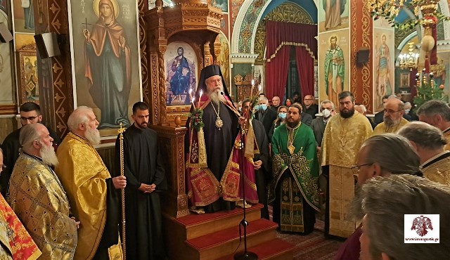 Κατά τη διάρκεια της πανηγυρικής εσπερινής λατρευτικής σύναξης, ο σεπτός ποιμενάρχης, απευθυνόμενος στους πιστούς που είχαν κατακλύσει τον ναό, μίλησε για την ενανθρώπιση του Θεού και τη θυσία Του για τη σωτηρία τού ανθρώπου. Επεσήμανε «την επιτακτική ανάγκη να μην ακυρώνουμε, με τις πράξεις και τους λογισμούς μας, την μέγιστη αυτή προσφορά αγάπης του δημιουργού μας, αλλά να φροντίζουμε καθημερινά να δίνουμε ομολογία πίστεως».