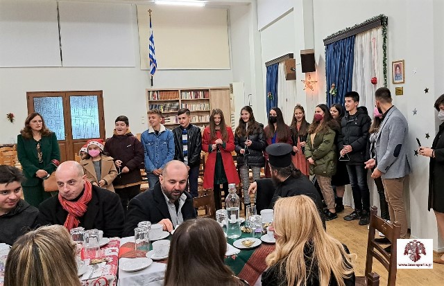 Μετά το πέρας του εσπερινού, η ενορία πρόσφερε στο πνευματικό κέντρο, το καθιερωμένο κέρασμα, ενώ παιδιά της περιοχής έψαλλαν τα κάλαντα δίνοντας μία όμορφη εορταστική νότα. Κατά την έξοδο από το πνευματικό κέντρο, η Φιλαρμονική Μολάων απέδωσε τα χριστουγεννιάτικα κάλαντα. Ο σεβασμιώτατος κ. Ευστάθιος ευχαρίστησε θερμά τόσο τα παιδιά της ενορίας, όσο και τα μέλη της Φιλαρμονικής, ευχόμενος για το νέο έτος «υγεία, χαρά και κατά Θεόν προκοπή».