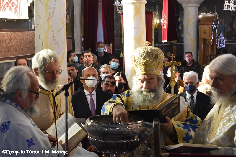 Στο Γύθειο, το πρωί της Παρασκευής 6/1 στον Ιερό Μητροπολιτικό Ναό Αγίου Γεωργίου του Τροπαιοφόρου τελέστηκαν η ακολουθία του όρθρου, η αρχιερατική Θεία Λειτουργία και η ακολουθία του Μεγάλου Αγιασμού των Θεοφανείων, προεξάρχοντος του σεβασμιωτάτου Μητροπολίτη Μάνης κ. Χρυσοστόμου Γ’, πλαισιωμένου από κληρικούς της Μητρόπολης.