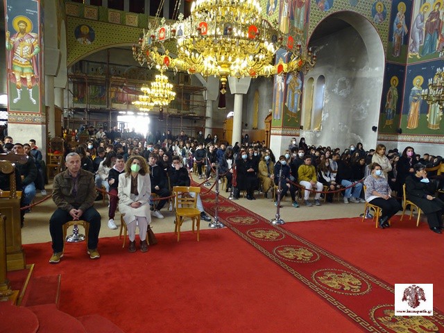 Κατά τη διάρκεια της εσπερινής λατρευτικής σύναξης εκφωνήθηκε επίκαιρη ομιλία από τον ιεροκήρυκα της ΙΜΜΣ, πανοσ. αρχ. Ραφαήλ Τσάλτα, ο οποίος αναφέρθηκε στο σπουδαίο έργο και τις εμπνευσμένες προσωπικότητες των Τριών Ιεραρχών, ενώ στάθηκε ιδιαίτερα στις διδαχές τους, «που στην εποχή μας θα πρέπει να αποτελέσουν οδοδείκτη, ώστε η Παιδεία και κατ’ επέκταση η κοινωνία μας να ξεφύγουν από το τέλμα».