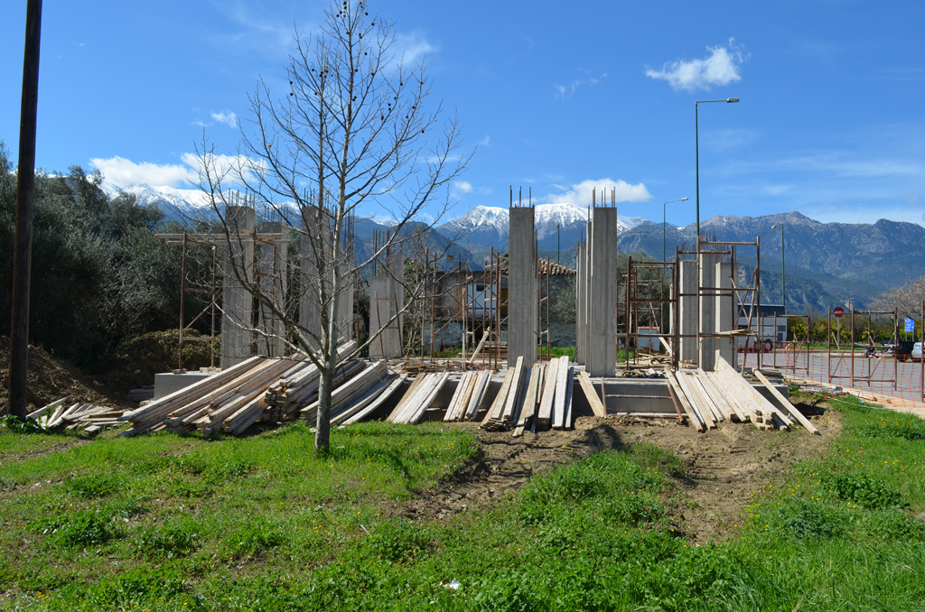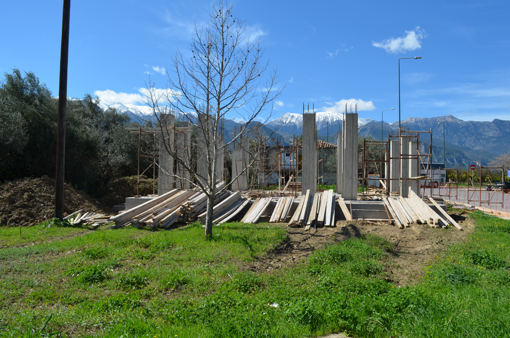 Με γοργούς ρυθμούς προχωρά η ανέγερση του Ιερού Ναού του Αγίου Ανανία Λαμπάρδη, Μητροπολίτη Λακεδαιμονίας, στον περιβάλλοντα χώρο του Διοικητηρίου Λακωνίας στη Σπάρτη.