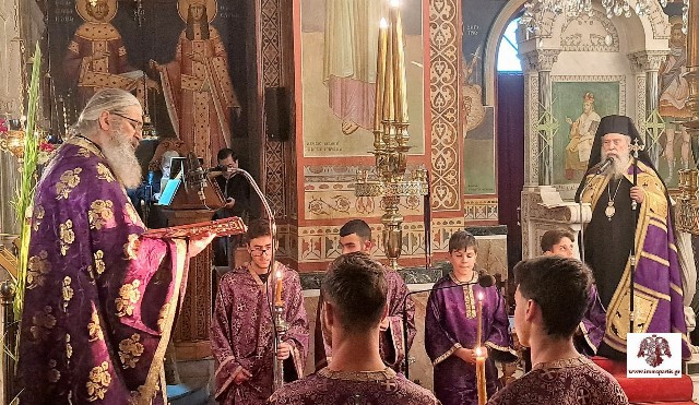 Το απόγευμα της Κυριακής των Βαΐων, 9 Απριλίου, τελέστηκε η ακολουθία του Νυμφίου, στον ενοριακό Ιερό Ναός Αγίας Τριάδος Νεάπολης χοροστατούντος του σεβασμιωτάτου Μητροπολίτη Μονεμβασίας και Σπάρτης κ. Ευσταθίου.