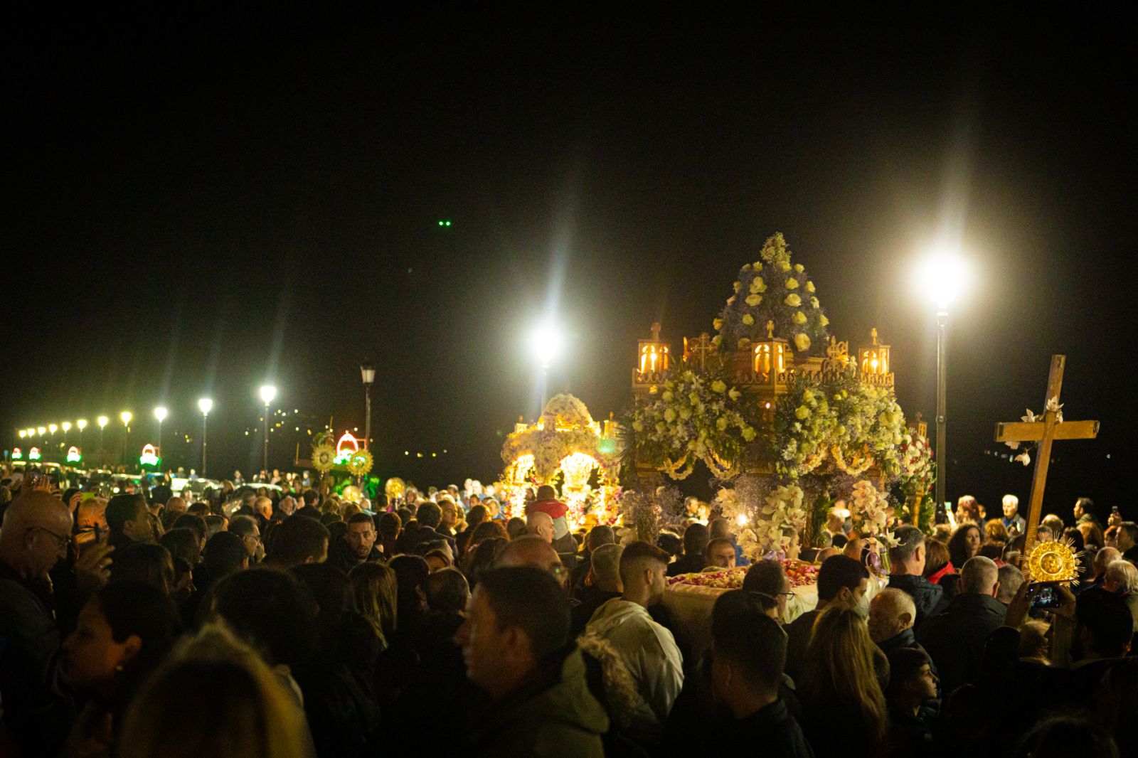 Μία ημέρα νωρίτερα, τη Μ. Παρασκευή (14/4) έγινε η περιφορά του Επιταφίου στα γραφικά καλντερίμια του κάστρου και στη συνέχεια -μέσω της μόνης έμβασης- η πομπή έφτασε στην παραλία της Γέφυρας και κατέληξε στον Ιερό Ναό του Οσίου Λεοντίου.