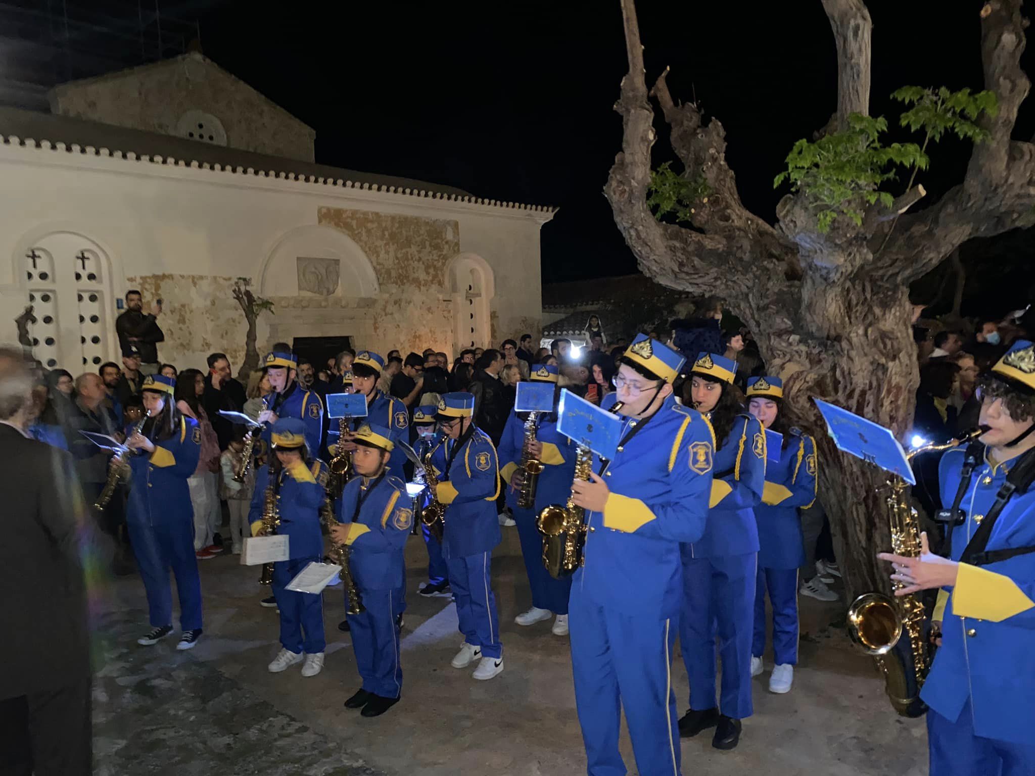 Όπως κάθε χρόνο, η ανάγνωση του Ευαγγελίου και το χαρμόσυνο γεγονός της Αναστάσεως έλαβαν χώρα στον στολισμένο προαύλιο χώρο του ναού. Ιδιαίτερο χρώμα στην τελετή έδωσε η Φιλαρμονική Δ. Σπάρτης υπό τη διεύθυνση του μαέστρου κ. Σαράντου Κανελλάκου.