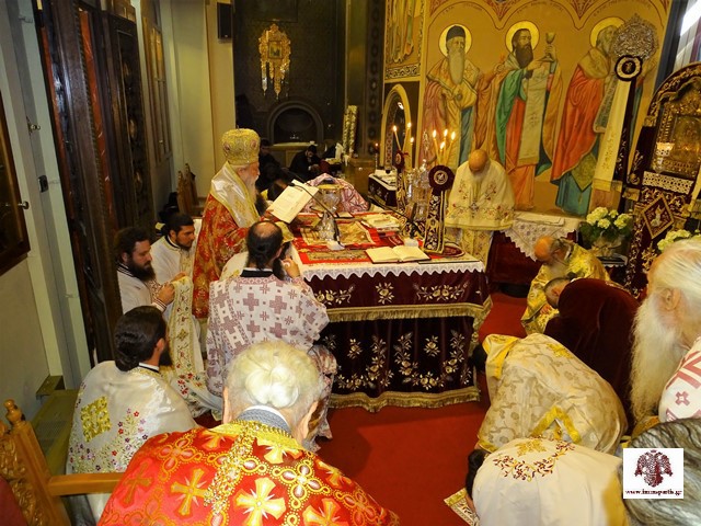 Στον Εσπερινό συμμετείχαν, ως προσκεκλημένοι του Μητροπολίτη κ. Ευσταθίου, οι σεβασμιώτατοι Μητροπολίτες, Φωκίδος κ. Θεόκτιστος και Σισανίου και Σιατίστης κ. Αθανάσιος, ο οποίος και χοροστάτησε, καθώς και πλειάδα κληρικών απ’ όλη την Μητροπολιτική περιφέρεια.