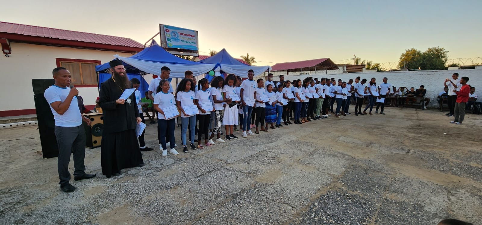 Πραγματοποιήθηκε η πρώτη αποφοίτηση σπουδαστών της Σχολής Πληροφορικής Μαδαγασκάρης, που ιδρύθηκε κι έλαβε «σάρκα και οστά» μετά από τη φωτισμένη σκέψη του θεοφιλεστάτου Λάκωνα Επισκόπου Τολιάρας και Νοτίου Μαδαγασκάρης, κ. Προδρόμου και τις σεπτές ευχές κι ευλογίες του μακαριωτάτου Πατριάρχου Αλεξανδρείας και πάσης Αφρικής, κ. Θεοδώρου.
