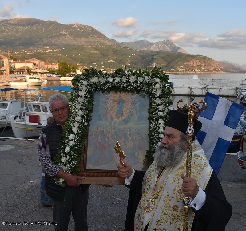 Στη Μάνη η δεσποτική εορτή της Αναλήψεως του Χριστού τιμήθηκε σε δύο περιοχές. Την Τετάρτη (24/5) έλαβε χώρα ο πανηγυρικός εσπερινός από τον σεβασμιώτατο Μητροπολίτη κ. Χρυσόστομο Γ’ στον ομώνυμο ναό στο χωριό Άγιος Νικόλαος Σελίνιτσας Λεύκτρου, ενώ ανήμερα της εορτής (Πέμπτη 25/5) ο Ιεράρχης τέλεσε τη Θεία Λειτουργία στον κοιμητηριακό Ναό Αναλήψεως στο Γύθειο.