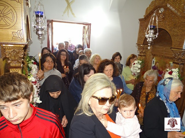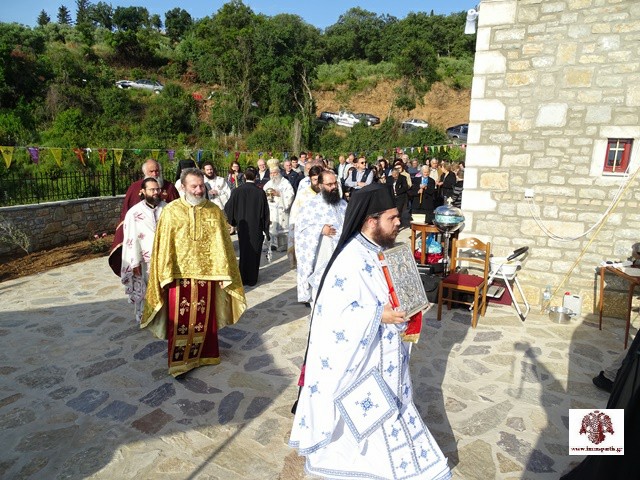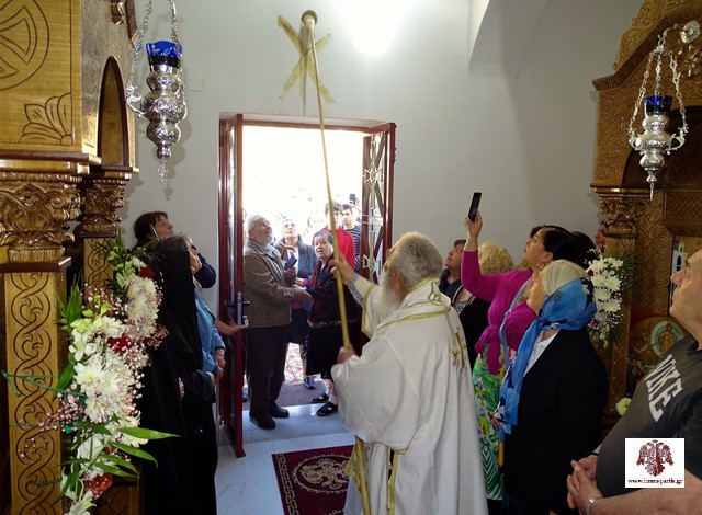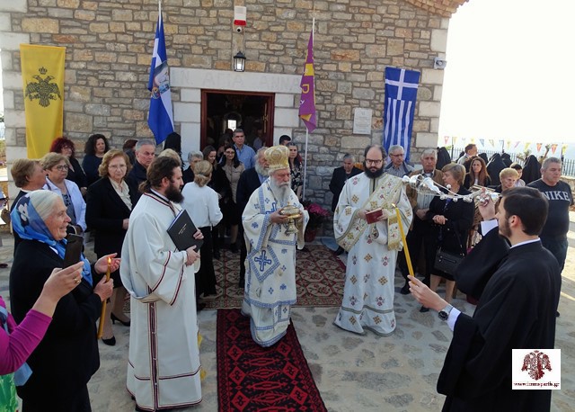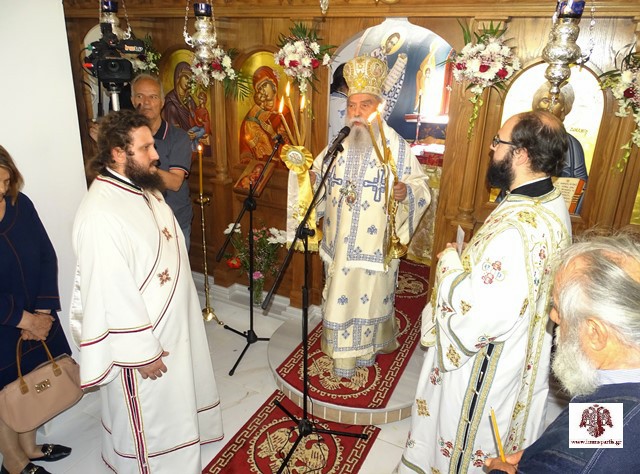 Ακολούθησε, σε χαρμόσυνο κλίμα, η τέλεση της πρώτης αρχιερατικής Θείας Λειτουργίας. Με την ολοκλήρωση της λατρευτικής σύναξης, ο σεβασμιώτατος επανέλαβε τις ευχαριστίες του προς όλους όσοι συνέβαλαν, επώνυμα ή ανώνυμα, στην ανέγερση του ναού, προς τους κληρικούς που συνέδραμαν και συμμετείχαν στην τελετή, καθώς και προς τους πολυάριθμους πιστούς, που με ευλάβεια παρακολούθησαν τα εγκαίνια.