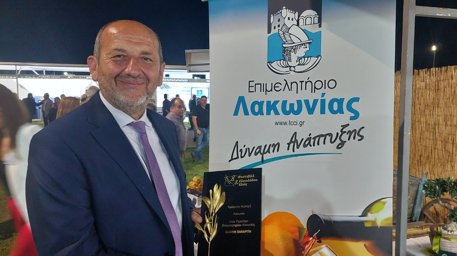 Ο Ι. Παναρίτης επεσήμανε πως η διοίκηση του Επιμελητηρίου, «έμπρακτα επενδύει στον τομέα αυτό με σημαντικές και στοχευμένες κινήσεις», όπως η δημιουργία ινστιτούτου έρευνας και σπουδών για το ελαιόλαδο και την ελιά στη Λακωνία σε συνεργασία με το Πανεπιστήμιο Πελοποννήσου. Επιπροσθέτως, ο πρόεδρος αναφέρθηκε και στη διαπίστευση του Επιμελητηρίου Λακωνίας ως φορέα πιστοποίησης του φαινολικού ελαιολάδου και τις δυνατότητες που απορρέουν από την εν λόγω ενέργεια. Στο τέλος της ομιλίας του, ο Ι. Παναρίτης παρέλαβε από τους διοργανωτές το βραβείο και ευχαρίστησε για την ιδιαίτερη τιμή.