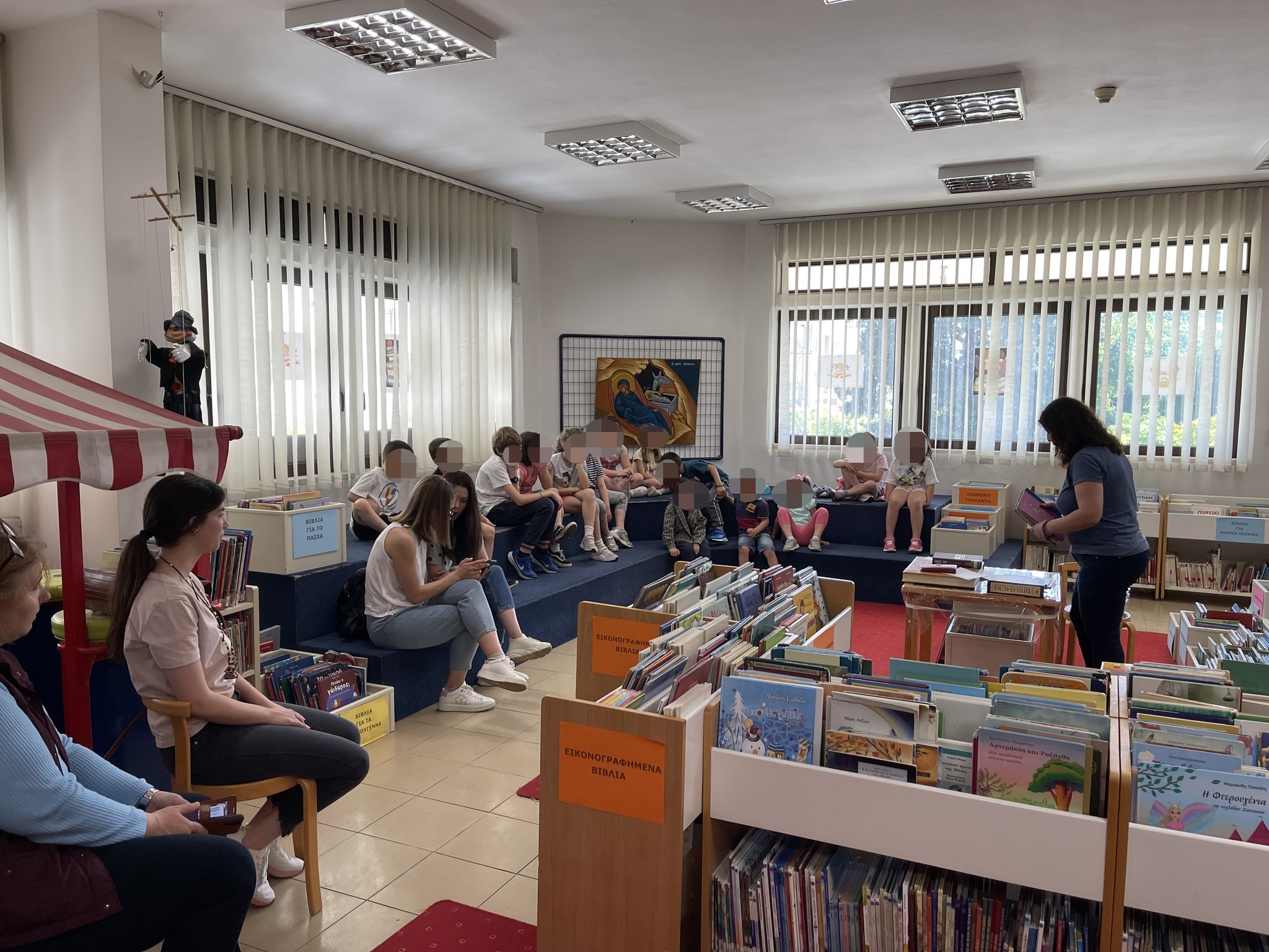 Τα παιδιά παρακολούθησαν την παρουσίαση του προγράμματος «Γνωριμία με τη Βιβλιοθήκη», που έλαβε χώρα από τη βιβλιοθηκονόμο Ντίνα Διδάχου στο παιδικό τμήμα.