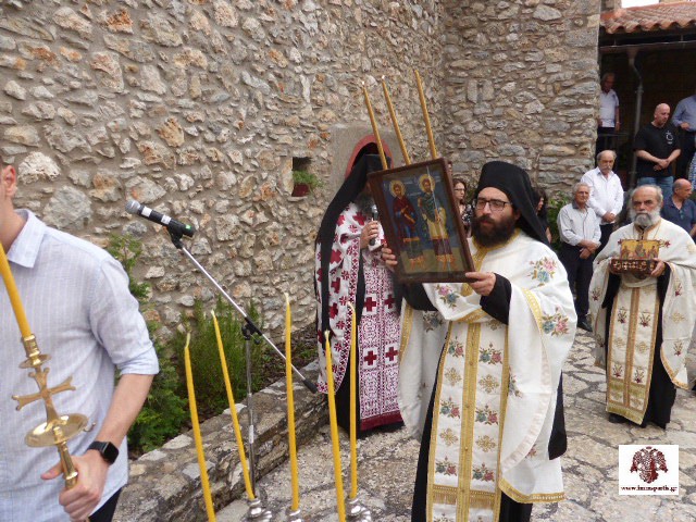 Ειδικότερα, το απόγευμα της παραμονής τελέσθηκε ο πανηγυρικός εσπερινός μετ’ αρτοκλασίας προεξάρχοντος του πρωτοσύγκελου της ΙΜΜΣ, πανοσιολογιωτάτου αρχ. Θεοφίλου Μαντζαβράκου, με τη συμμετοχή αρκετών κληρικών της τοπικής Εκκλησίας. Λόγο πνευματικής οικοδομής εκφώνησε προς τους ευλαβείς προσκυνητές ο καθηγούμενος της μονής, πανοσιολογιώτατος αρχ. Γρηγόριος Βαλτογιάννης.