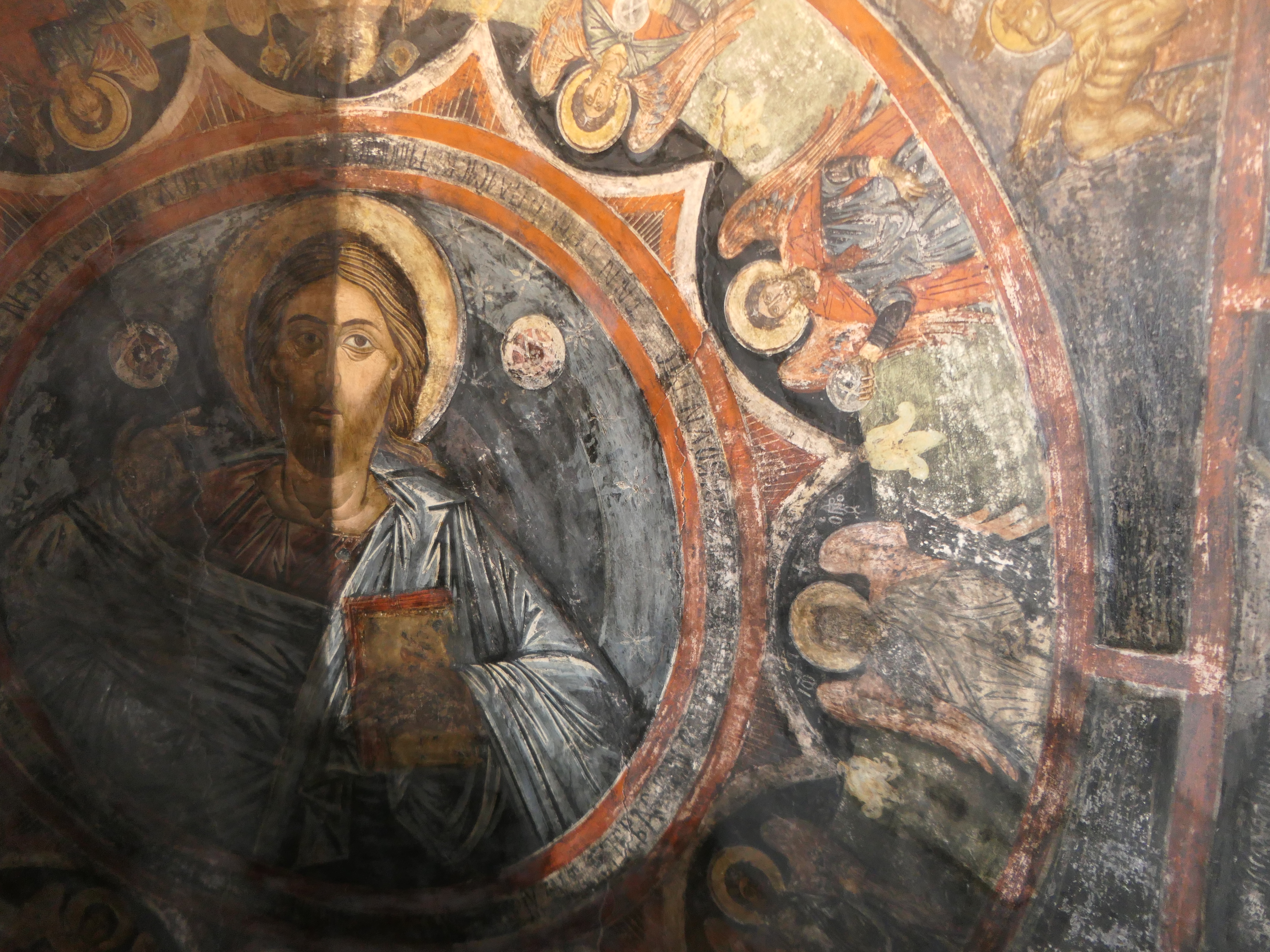 Στο καθολικό της μονής εξελίσσονται επεμβάσεις καθαρισμού των τοιχογραφιών με χημικό και μηχανικό τρόπο, καθώς και στερεωτικές εργασίες για την αποκατάσταση της μηχανικής τους αντοχής.