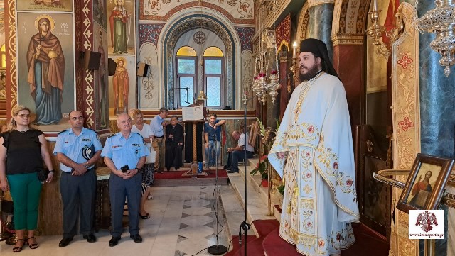Στην ομιλία του, ο ποιμενάρχης αναφέρθηκε αρχικά στο συνταρακτικό όσο και θλιβερό περιστατικό στην Κάρυστο, που προκάλεσε την απώλεια των δυο πιλότων της Πολεμικής Αεροπορίας. Ο Μητροπολίτης ευχήθηκε την ανάπαυση των ψυχών των δυο αδικοχαμένων νέων και την εκ Θεού ενδυνάμωση των οικείων προσώπων τους, ενώ υπογράμμισε ότι οι προσευχές μας θα πρέπει να συμπεριλαμβάνουν και όλους όσοι δίνουν με αυταπάρνηση την άνιση μάχη με την πύρινη λαίλαπα, που σε ετήσια βάση κατατρώει την πατρίδα μας.
