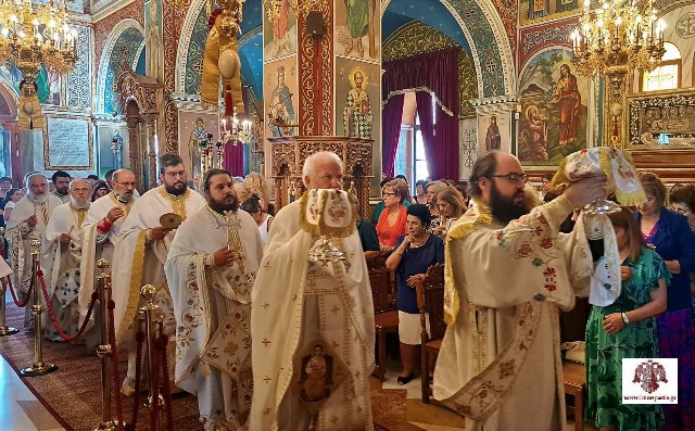 Ανήμερα της εορτής, στον καθεδρικό ναό της πόλης, τελέσθηκαν ο πανηγυρικός όρθρος, η ευλόγηση των άρτων και η Αρχιερατική Θεία Λειτουργία, προεξάρχοντος του Μητροπολίτη κ. Ευσταθίου, τον οποίο συνεπικούρησαν αρκετοί κληρικοί.