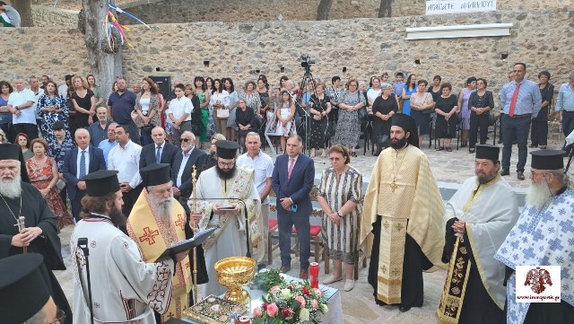 Αρχικά, τον λόγο έλαβε η υπουργός Πολιτισμού, Λίνα Μενδώνη, η οποία τόνισε ότι «η ημέρα αυτή είναι χαρμόσυνη, όχι μόνο γιατί αποκαταστάθηκε ένα ιστορικό μνημείο του τόπου, αλλά και γιατί αποδόθηκε στη λατρεία».