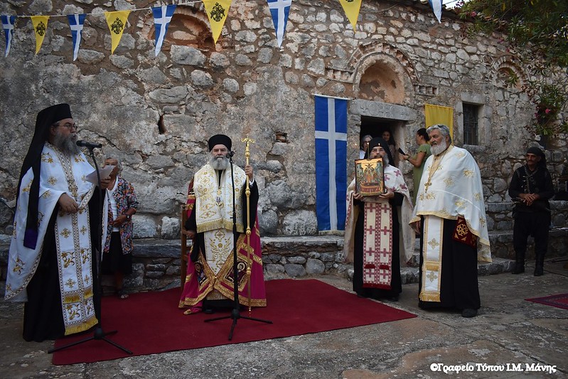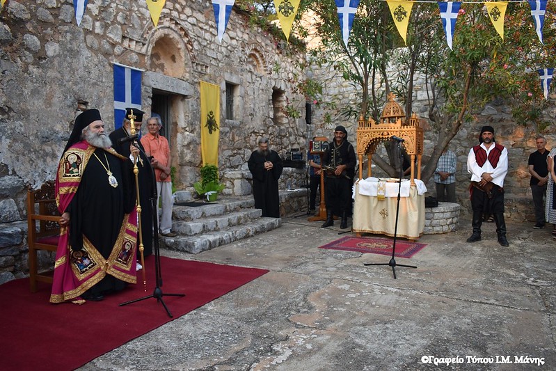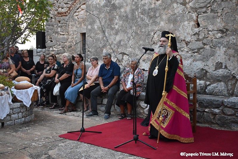 Πανηγυρικός εσπερινός με τη συμμετοχή του σεβασμιωτάτου Μητροπολίτη Μάνης κ. Χρυσοστόμου Γ΄ και των κληρικών, αρχ. Συμεών Λαμπρινάκου και αρχ. Αλυπίου Κατσαμπάκη, τελέστηκε την Τρίτη 22 Αυγούστου στην Ιερά Μονή Παναγίας Φανερωμένης στον Δρύαλο Μέσα Μάνης.