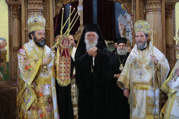 Παρουσία του μακαριωτάτου Αρχιεπισκόπου Αθηνών και πάσης Ελλάδος κ. Ιερωνύμου, της πολυαρχιερατικής Θείας Λειτουργίας προέστη ο σεβασμιώτατος Μητροπολίτης Γλυφάδας κ. Αντώνιος, συλλειτουργούντων των σεβασμιωτάτων Μητροπολιτών Σύρου κ. Δωροθέου, Σιδηροκάστρου κ. Μακαρίου, Χαλκίδος κ. Χρυσοστόμου, Κορίνθου κ. Διονυσίου, Μεσσηνίας κ. Χρυσοστόμου, Ιλίου κ. Αθηναγόρα, Θεσσαλιώτιδος κ. Τιμοθέου και Φαναρίου κ. Αγαθαγγέλου.