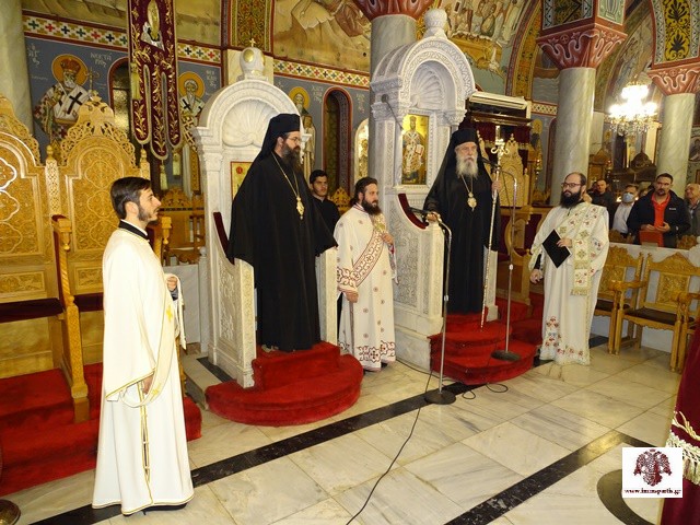 Κατά τη διάρκεια του εσπερινού έγινε η ενθρόνιση της εικόνας του Οσίου στον σολέα του ναού και εψάλλησαν οι χαιρετισμοί του. Λόγο πνευματικής οικοδομής εκφώνησε με γλαφυρότητα, ο τέως αντιπρόεδρος του Αρείου Πάγου, διοικητής του Ασύλου Ανιάτων Σπάρτης και λαϊκός ιεροκήρυκας της ΙΜΜΣ, κ. Γεώργιος Κοντός, ο οποίος αναφέρθηκε «στον καθημερινό και επίπονο αγώνα του πιστού, που οδηγεί στην σωτηρία της ψυχής».