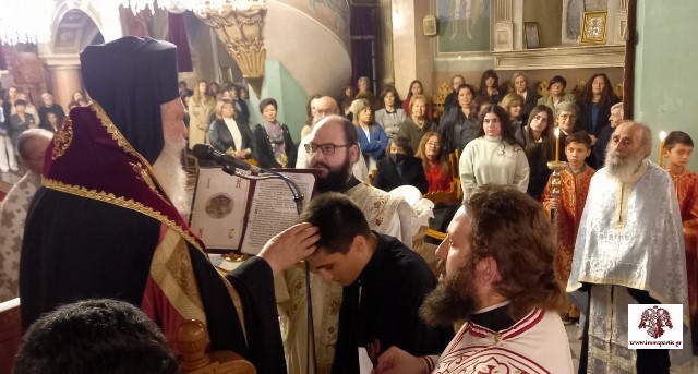 Ακολούθως, ο σεβασμιώτατος χειροθέτησε Αναγνώστη έναν ευσεβή νέο του χωριού, τον Νικόλαο Αγγελέτο, τον οποίο εκθείασε για το ήθος του προτρέποντάς τον να συνεχίσει να πορεύεται στον δρόμο της αρετής.