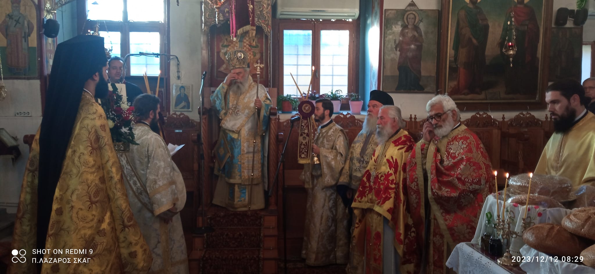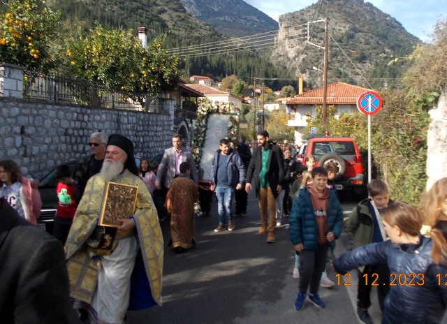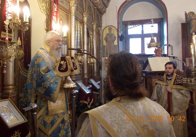 Την κυριώνυμη ημέρα, Τρίτη (12/12), τελέσθηκαν ο πανηγυρικός όρθρος, η ευλόγηση των άρτων και η αρχιερατική Θεία Λειτουργία, προεξάρχοντος του σεβασμιωτάτου Μητροπολίτη κ. Ευσταθίου.