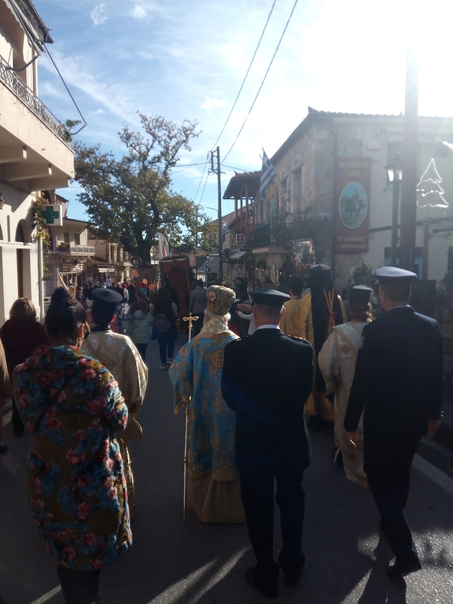 Ακολούθησε η καθιερωμένη λιτάνευση της εικόνας του Αγίου Σπυρίδωνος στους κεντρικούς δρόμους του Μυστρά, υπό τους παιανισμούς της Φιλαρμονικής του Δ. Σπάρτης.