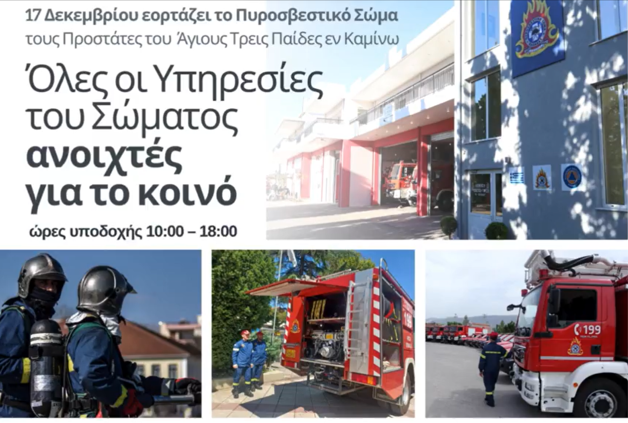 Στο πλαίσιο του εορτασμού, όλες οι Πυροσβεστικές Υπηρεσίες της Επικράτειας θα είναι ανοιχτές σήμερα για το κοινό έως τις 18:00 μμ.