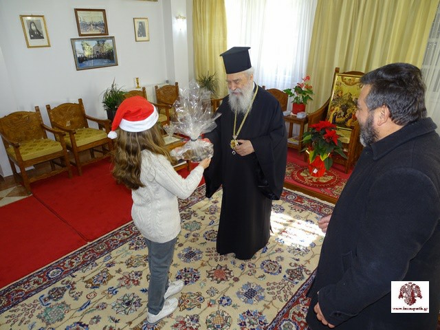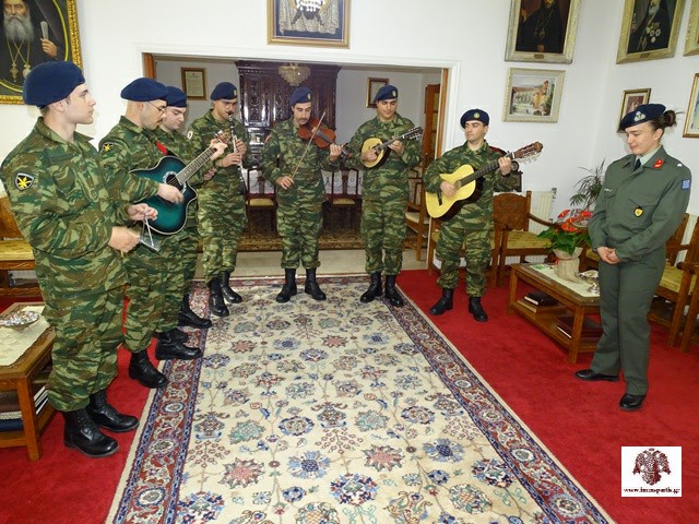 Το πρωί της Παρασκευής 22 Δεκεμβρίου, εξάλλου, ο σεβ. Ποιμενάρχης μας δέχθηκε στο Επισκοπείο τη χορωδία του Στρατοπέδου «Συνταγματάρχη Κωνσταντίνου Δαβάκη», που έψαλε τα παραδοσιακά αλλά και τα βυζαντινά κάλαντα. Ο σεβασμιώτατος ευχαρίστησε την υπαξιωματικό και τους στρατευμένους νέους για την ευγενική χειρονομία τους, ευχήθηκε δε εποικοδομητική θητεία και ο Πανάγαθος Θεός να ευλογεί και να αγιάζει τη ζωή τους.