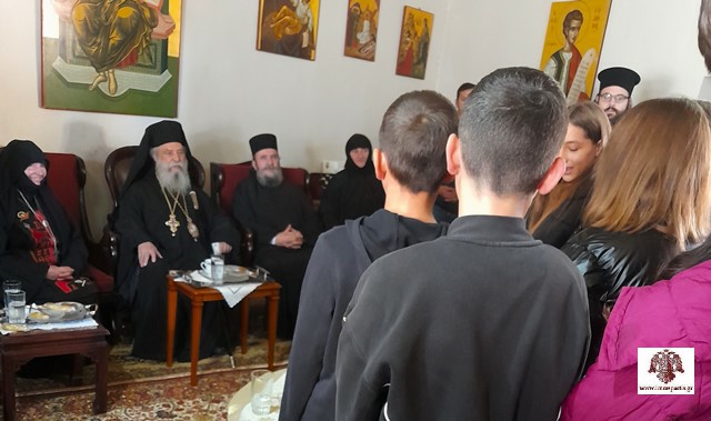 Μετά το πέρας της Θείας Λειτουργίας, προσφέρθηκε στο αρχονταρίκι της μονής το καθιερωμένο κέρασμα, ενώ μία όμορφη εορταστική νότα έδωσαν παιδιά που έψαλλαν τα κάλαντα στον σεβασμιώτατο, την ηγουμένη μοναχή Μακαριώτισσα και τους υπόλοιπους παρευρισκόμενους.