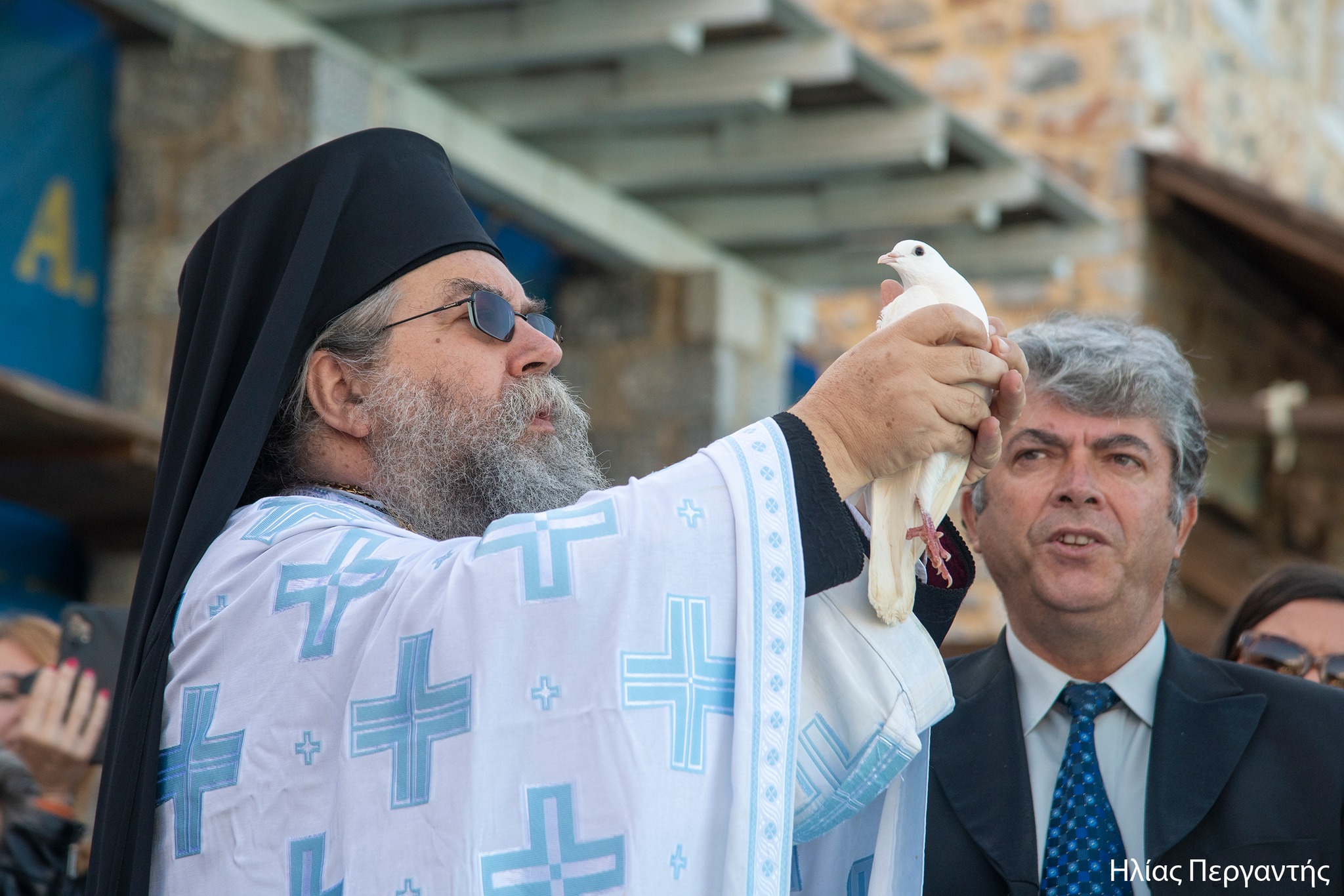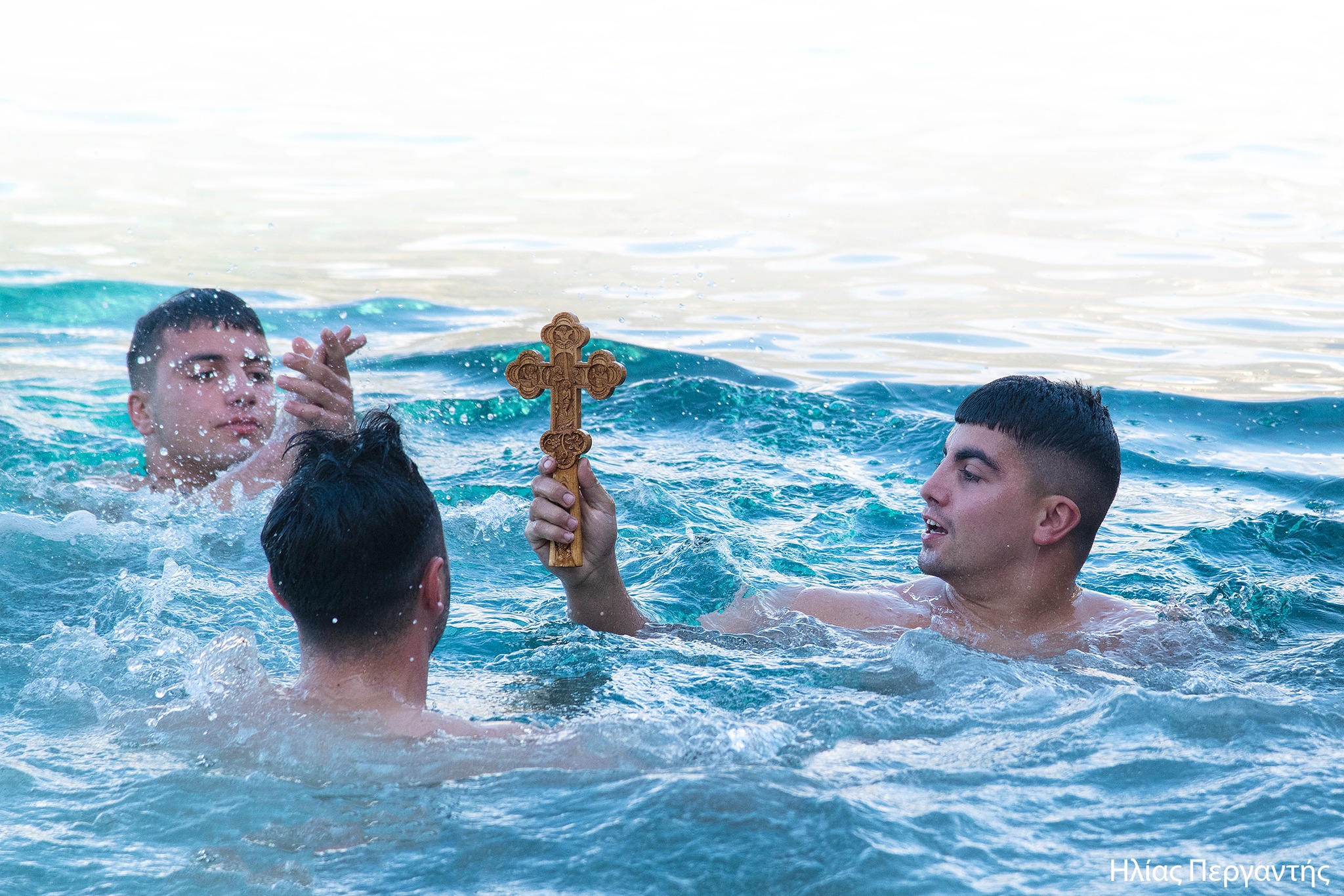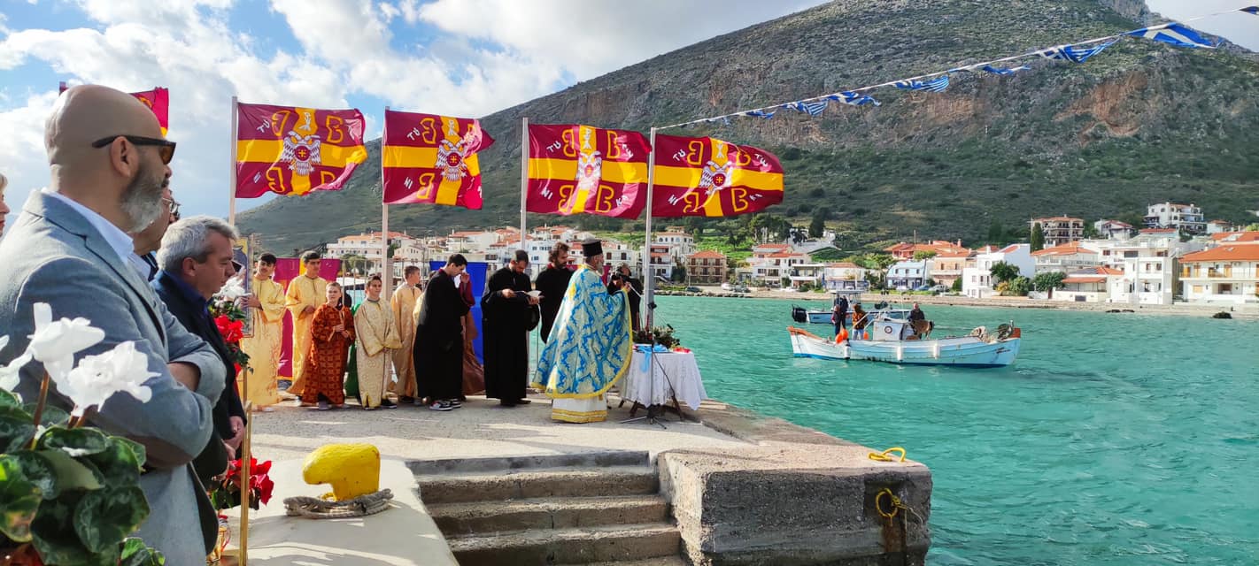 Ακολούθως, τελέσθηκε ο αγιασμός των υδάτων στο λιμάνι της λακωνικής κωμόπολης. Αρκετοί ήταν οι θαρραλέοι νέοι της περιοχής που έπεσαν στη θάλασσα για να ανασύρουν τον Σταυρό και να δεχθούν την ευλογία Του.