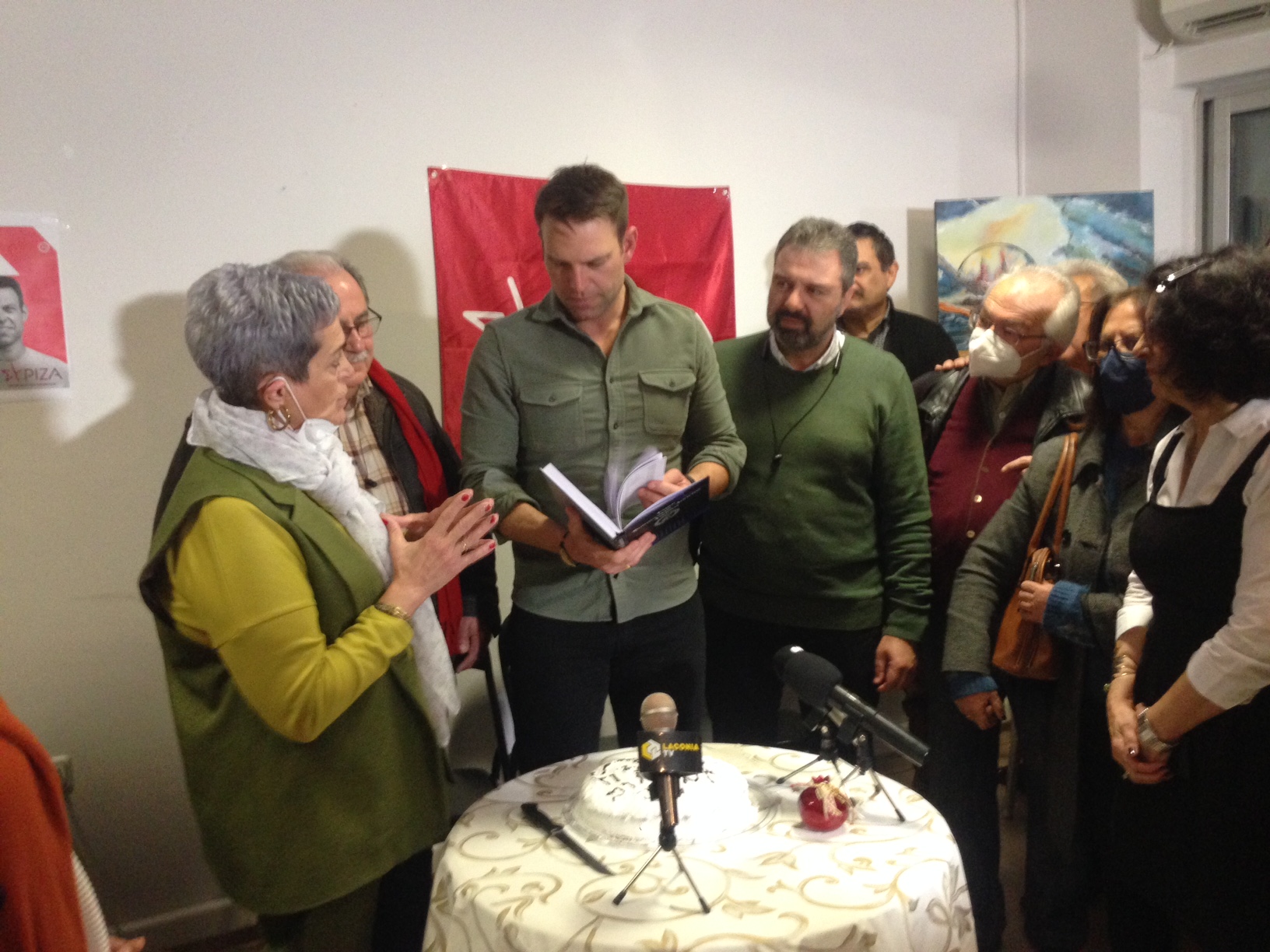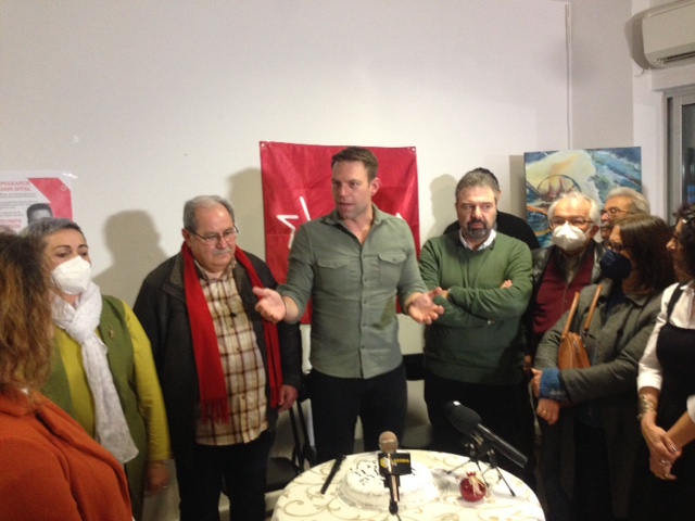 Μια στάση εδώ. Στην πορεία για το 4ο Συνέδριο του ΣΥΡΙΖΑ – ΠΣ, η Νομαρχιακή Επιτροπή Λακωνίας έκοψε την πίτα της, δια χειρός προέδρου Στέφανου Κασσελάκη, σε ανοιχτή εκδήλωση, στα γραφεία του κόμματος, στη Σπάρτη.