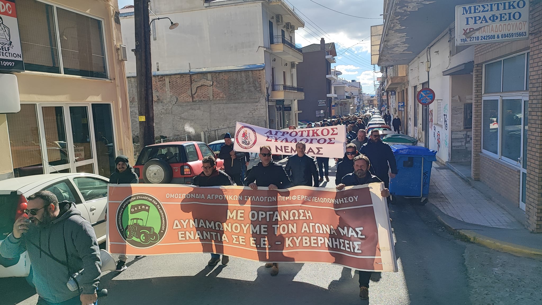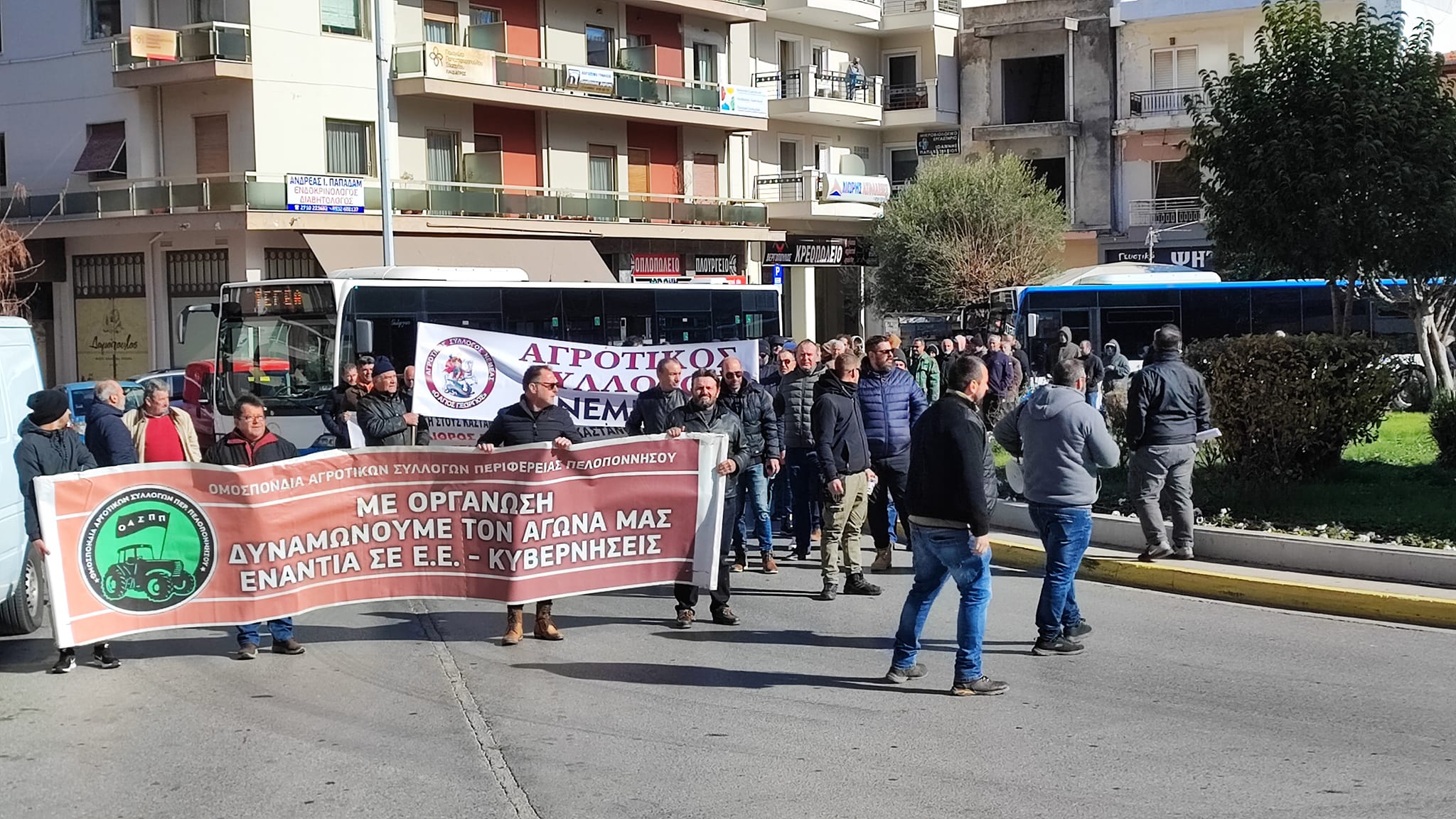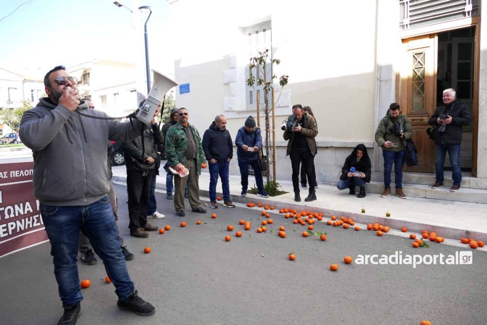 Μετά από κάλεσμα της Ομοσπονδίας Αγροτικών Συλλόγων Περιφέρειας Πελοποννήσου (ΟΑΣΠΠ), συγκεντρώθηκαν στον σταθμό του ΟΣΕ στην είσοδο της πόλης και από εκεί κατευθύνθηκαν με πανό και συνθήματα στο Διοικητήριο της Περιφέρειας Πελοποννήσου στην πλατεία Εθνάρχου Μακαρίου. Οι αγανακτισμένοι παραγωγοί δεν δίστασαν να πετάξουν μπροστά από τον χώρο εσπεριδοειδή (πορτοκάλια-μανταρίνια), που όπως ισχυρίζονται βρίσκονται στα αζήτητα. Επίσης, άφησαν συμβολικά στο πεζοδρόμιο μπουκαλάκια με λίγα λίτρα ελαιολάδου, θέλοντας να καταδείξουν τη φετινή περιορισμένη παραγωγή λόγω της ακαρπίας.
