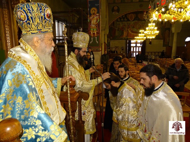 Κατά τη διάρκεια της Θείας Λειτουργίας, που παρακολούθησαν εκατοντάδες μαθητές και μαθήτριες όμορων σχολικών μονάδων, με τη συνοδεία των εκπαιδευτικών τους, τελέσθηκε η εις διάκονον χειροτονία του π. Νικηφόρου Καραμπάτου. Η ημέρα που επιλέχθηκε για την χειροτονία, ήτοι η εορτή των Τριών Ιεραρχών, είχε συμβολικό χαρακτήρα, αφού ο νέος διάκονος είναι εκπαιδευτικός και μάλιστα οι μαθητές του, όπως και τα υπόλοιπα παιδιά του σχολείου που υπηρετεί, είχαν την ευκαιρία να παρακολουθήσουν μία ιδιαίτερη τελετή και να αναφωνήσουν «άξιος» για τον αγαπημένο τους δάσκαλο.