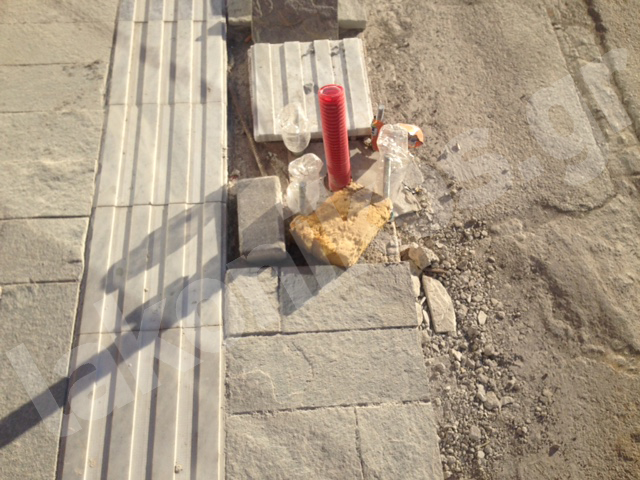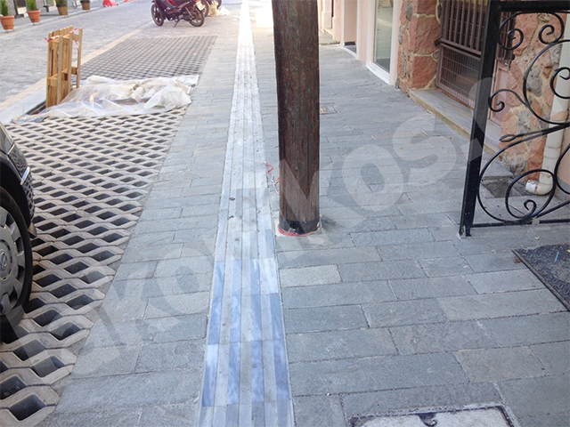Επιπλέον, ο κ. Τσούκλερης κατήγγειλε πως στο Open Mall «όλες οι οδεύσεις τυφλών πέφτουν πάνω στις κολώνες, στα φωτιστικά δηλαδή που θα τοποθετηθούν αργότερα». Οδηγός όδευσης τυφλών είναι μια ειδική λωρίδα στο δάπεδο ενός πεζοδρομίου, από πλάκες διαφορετικής υφής και χρώματος από την υπόλοιπη επιφάνεια, που σκοπό έχει την καθοδήγηση και ασφαλή διακίνηση ατόμων με προβλήματα όρασης. Με οδηγία της Ευρωπαϊκής Ένωσης τοποθετείται σε όλα τα πεζοδρόμια των εμπορικών δρόμων. Φαίνεται πως ενώ στη μελέτη προβλεπόταν κάποιος επαρκής χώρος, κάποια ικανή απόσταση, ώστε να μην κινδυνεύουν οι τυφλοί να χτυπήσουν στις κολώνες, τώρα, «στη φάση της κατασκευής, όχι».