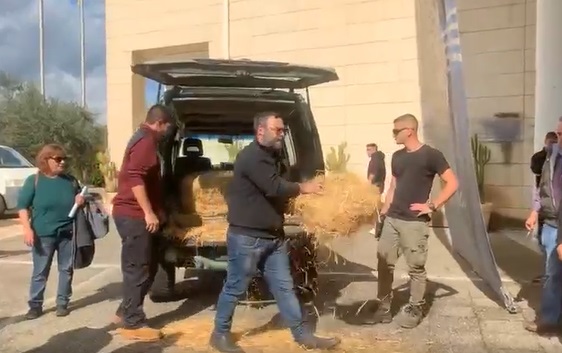 Προχώρησαν σε μηχανοκίνητη πορεία το πρωί της Δευτέρας (VIDEO-ΦΩΤΟ) - Συμβολικά έριξαν σανό και γάλα μπροστά στο Διοικητήριο