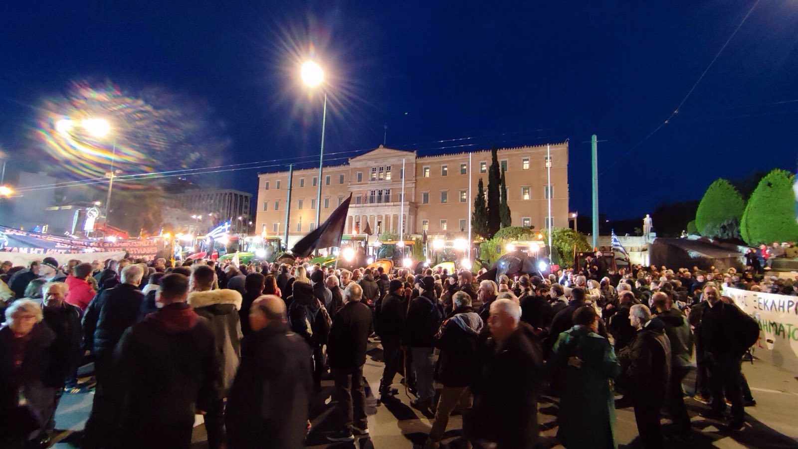 Το αγροτικό συλλαλητήριο στο κέντρο της Αθήνας άρχισε να στήνεται ήδη από το μεσημέρι της Τρίτης. Δεκάδες τρακτέρ κατέκλυσαν τους δρόμους έξω από τη Βουλή, ενώ αγρότες από όλη τη χώρα κατέφτασαν πεζοί και πήραν θέσεις μπροστά από τον «ναό της Δημοκρατίας», όπως και στις γύρω οδούς, Βασ. Αμαλίας, Βασ. Σοφίας, Όθωνος κ.α..