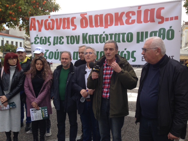 Ο ζωηρός πρόεδρος, Γιάννης Παναγόπουλος, περιέγραψε όλο το οδοιπορικό της ενημέρωσης που πραγματοποιεί η ΓΣΕΕ στη διαδρομή για την πανελλαδική απεργία της 17ης Απριλίου, ως ένα ταξίδι σπουδαιότερο του προορισμού του. Τόνισε πως για τους ανθρώπους του μόχθου η ακρίβεια είναι το μεγαλύτερο πρόβλημα. Υπογράμμισε πως «το Ινστιτούτο Εργασίας (ΙΝΕ) της ΓΣΕΕ κατέθεσε πρόταση για τον κατώτατο μισθό». Υπενθύμισε πως «ακόμα και η Ευρωπαϊκή Επιτροπή προτάσσει ότι ο κατώτατος μισθός πρέπει να ξεπερνά το κατώφλι της φτώχειας» και για να συμβεί αυτό «πρέπει να δίνεται το 60% τού διάμεσου μισθού +τον πληθωρισμό +την παραγωγικότητα της εργασίας» και άρα «αυτό το ποσό αντιστοιχεί σε 908 ευρώ, τουλάχιστον».