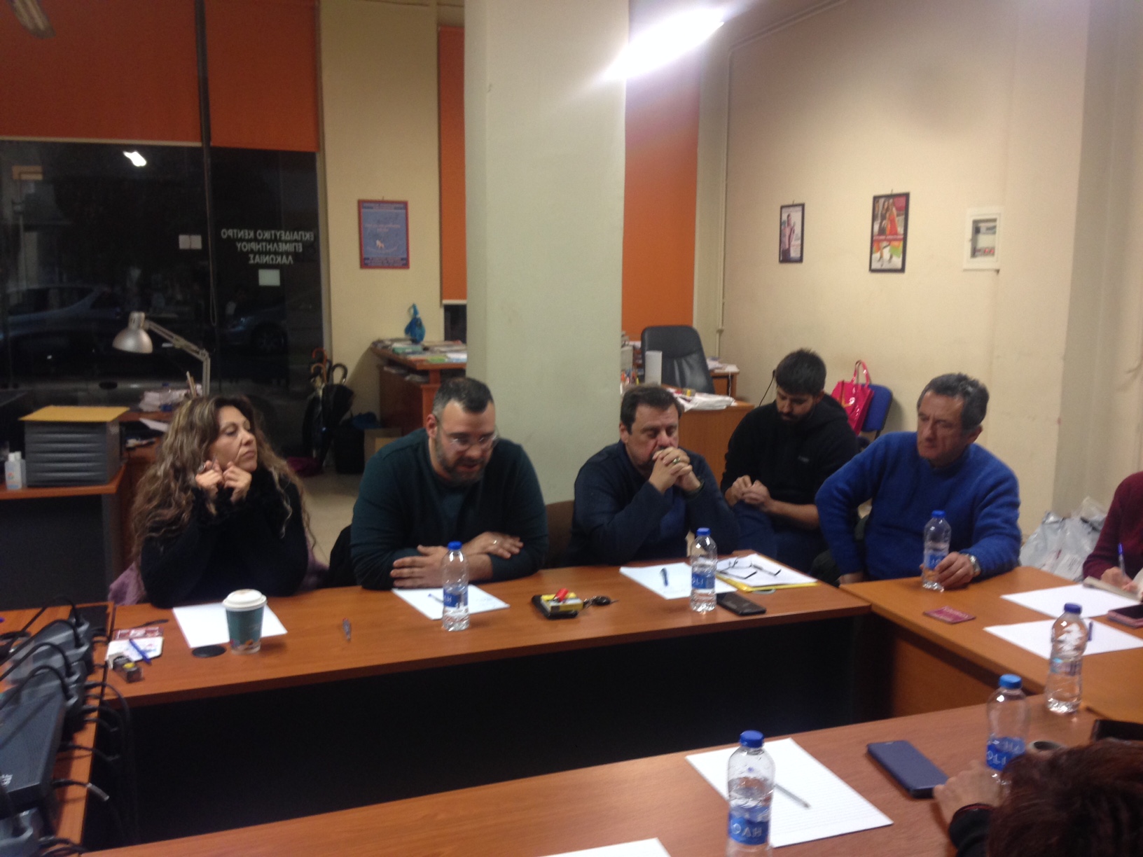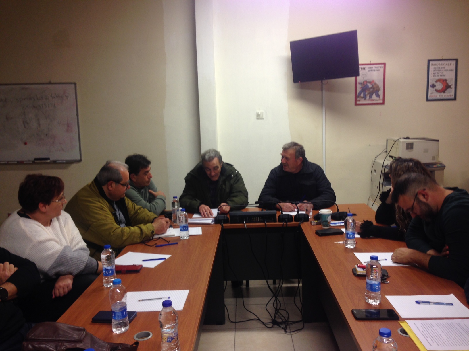 Στον χώρο της ΟΕΒΕΛ συναντήθηκαν οι: Παναγιώτης Κουμουνδούρος (ΑΔΕΔΥ Λακωνίας), Νίκος Μηνακάκης (Εργατικό Κέντρο Λακωνίας), Σωτήρης Ηλιόπουλος (ΟΕΒΕΛ), Δημήτρης Κωτσονούρης (ΑΔΕΔΥ Λακωνίας), Τάσος Παπαγιαννάκος (ΠΛΗΘΩΝ), Παναγιώτα Παπαγιαννοπούλου (Σύλλογος Φοροτεχνικών-Λογιστών), Μαριάννα Μοίρα (ΠΛΗΘΩΝ), Τριαντάφυλλος Ζάβαλης (ΑΔΕΔΥ Λακωνίας), Πολυξένη Μπατσάκη (ΣΥΠΕΛ, ΑΔΕΔΥ), Θεόδωρος Καψάλης (ΑΔΕΔΥ), Γρηγόρης Βουλουμάνος (Πολιτικοί Μηχανικοί Λακωνίας), Βασίλης Βρουλίτης (ΟΑΣΠΠ), Ηλίας Αρφάνης (Αγροτ/φοι Σπάρτης, μπλόκο), Ελένη Παινέση (Ιδιωτικοί Υπάλληλοι).