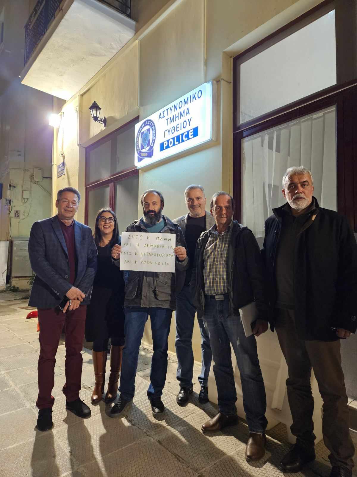 Υπογραμμίζει σχετικά ο Π. Μιχαλακάκος: «Το γεγονός δε, ότι μετά από ειρηνική καθιστική διαμαρτυρία στο πρώτο δημοτικό συμβούλιο, οδηγήθηκα σε προσαγωγή στο Αστυνομικό Τμήμα Γυθείου, είναι χαρακτηριστικό τού τι γίνεται στη Ανατολική Μάνη όλα αυτά τα χρόνια.