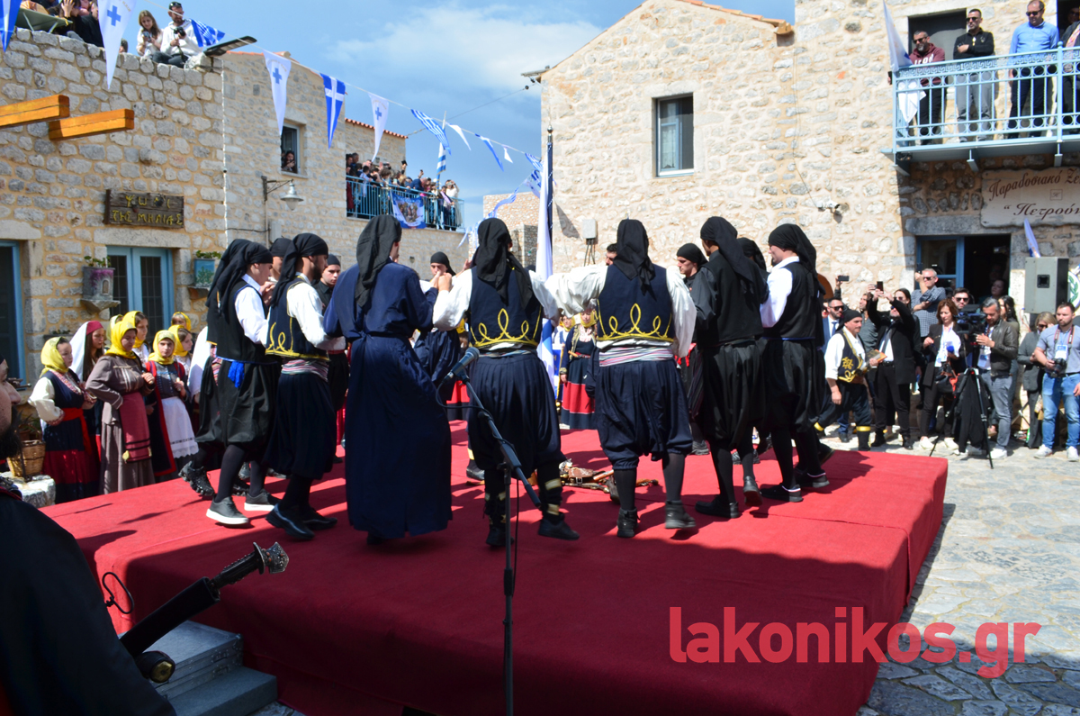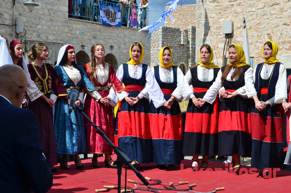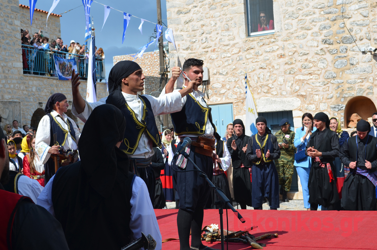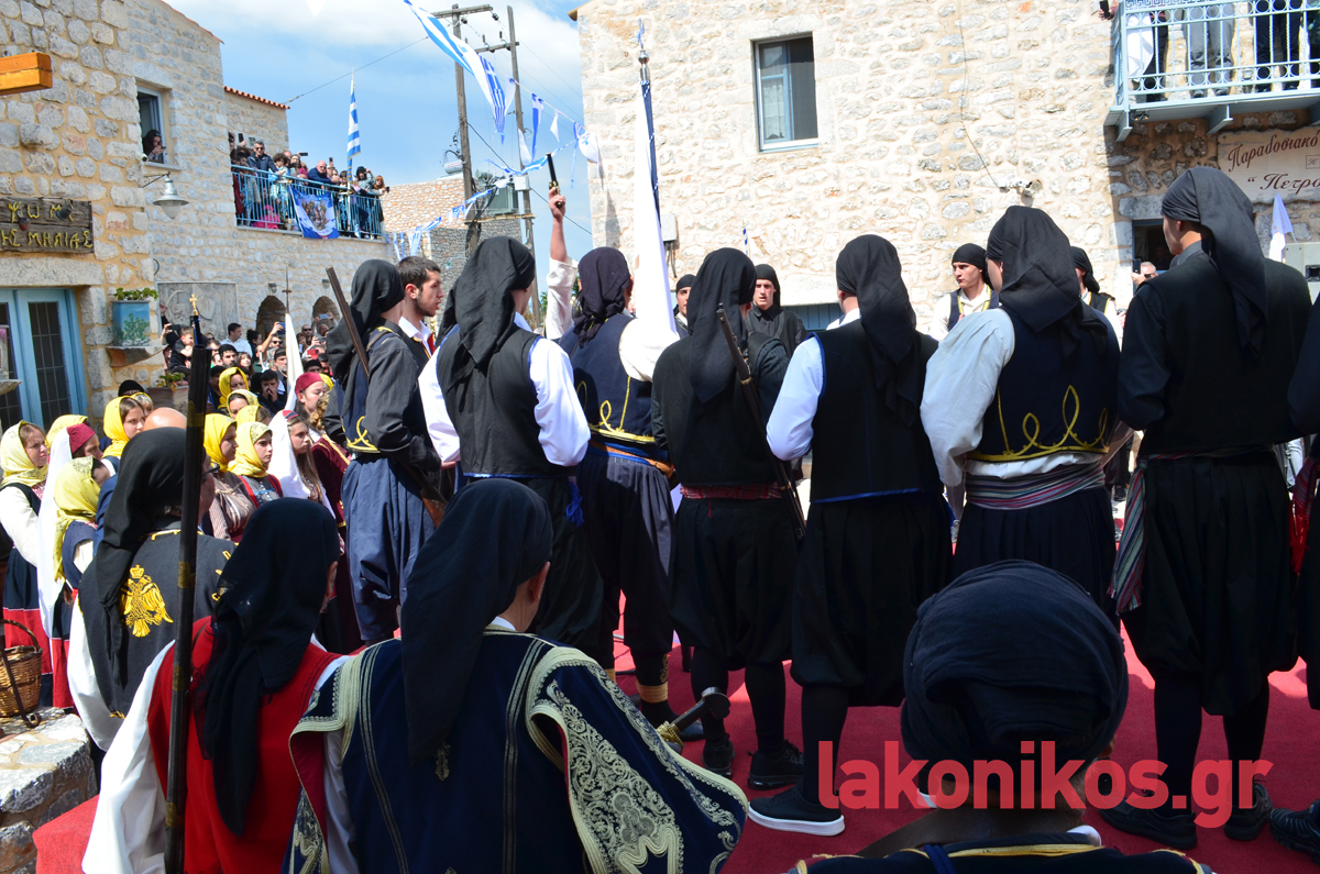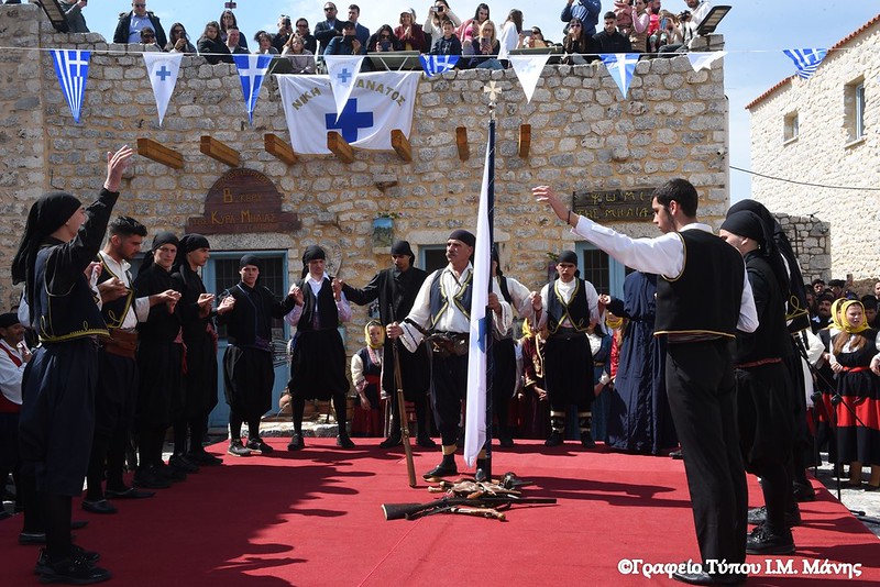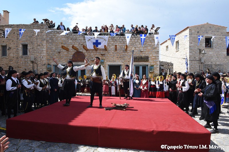 Σε μια αναπαράσταση των ηρωικών γεγονότων που γράφτηκαν με χρυσά γράμματα στις σελίδες του έθνους, για Νίκη ή Θάνατο ορκίστηκαν ξανά οι Μανιάτες οπλαρχηγοί, 203 χρόνια μετά την κήρυξη της Επανάστασης, διεγείροντας συναισθήματα υπερηφάνειας κι εθνικής ανάτασης. Παρά τις εν εξελίξει αποκριάτικες εκδηλώσεις σε διάφορες περιοχές του νομού, εκατοντάδες και φέτος ήταν όσοι επέλεξαν να τιμήσουν την ημέρα που οι Μανιάτες σήκωσαν το επαναστατικό λάβαρο.