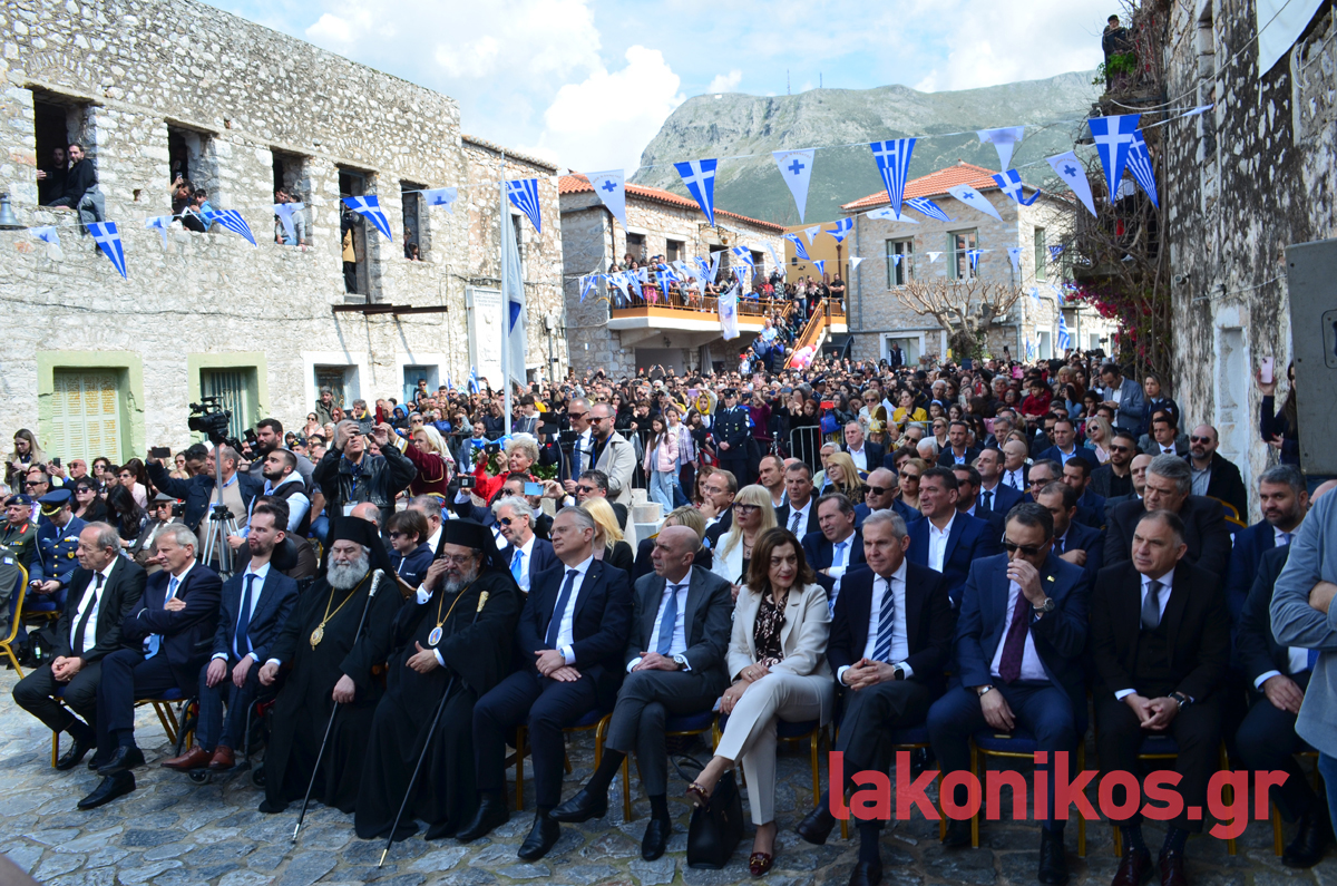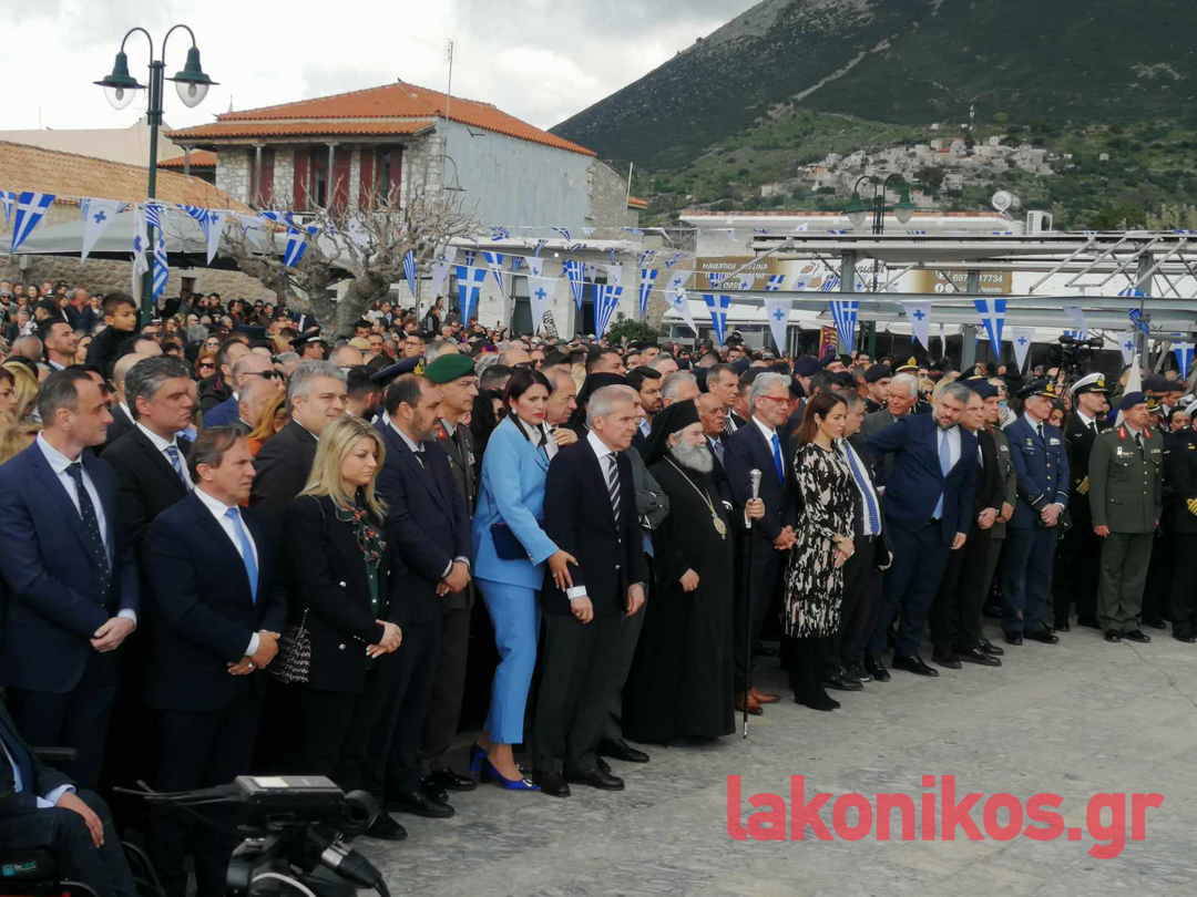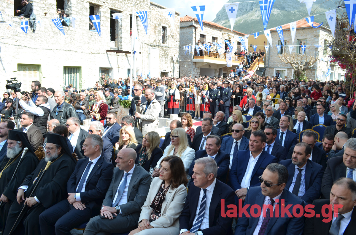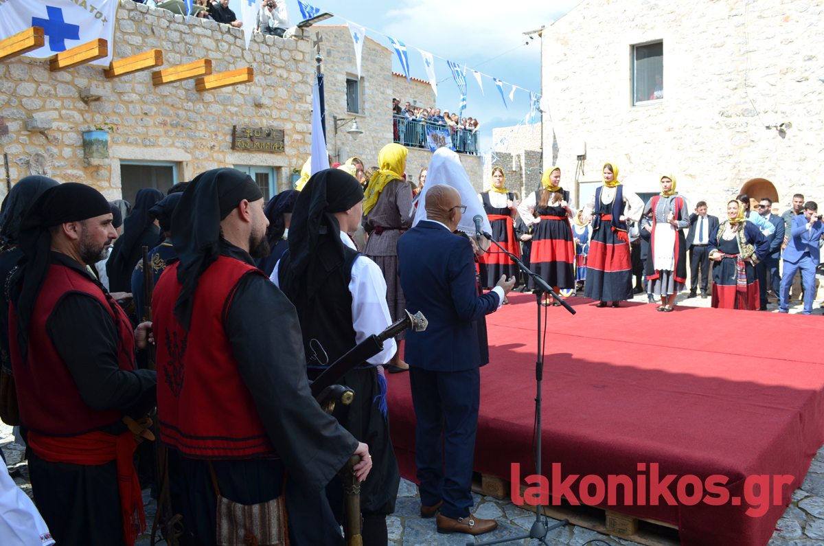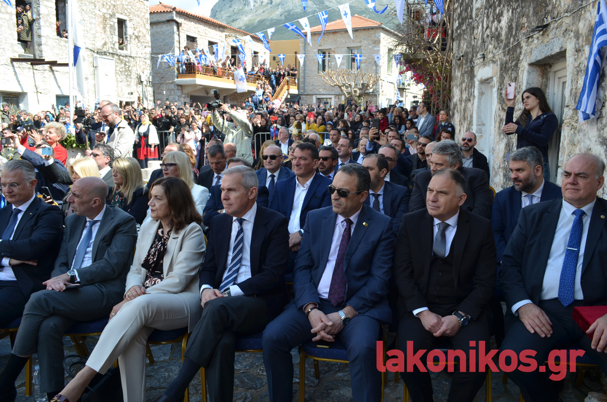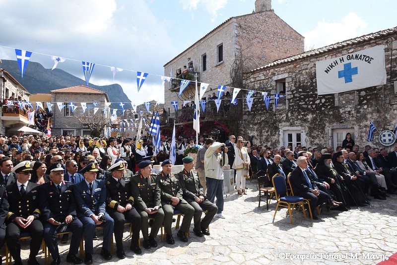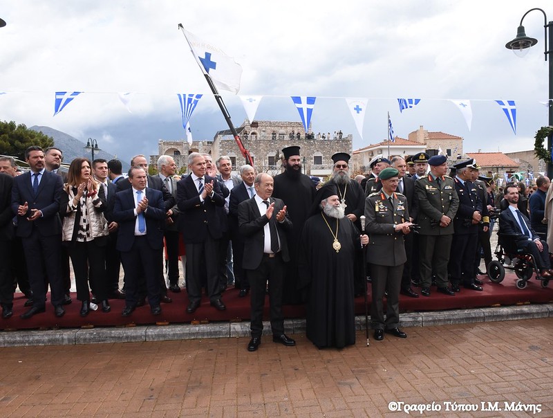 Από πλευράς του, ο περιφερειάρχης Πελοποννήσου, Δημήτρης Πτωχός, τόνισε «τη δίψα για ελεύθερο και ανεξάρτητο αέρα που ένωσε τους Μανιάτες» και έστειλε το μήνυμα πως «η κοινή θέληση πρέπει να ενώνει σήμερα και εμάς. Θέληση για συνεργασία. Θέληση για αλληλεγγύη. Θέληση για πρόοδο και εξέλιξη. Θέληση για να ανεβάζουμε κάθε μέρα τη πατρίδα μας ψηλότερα».