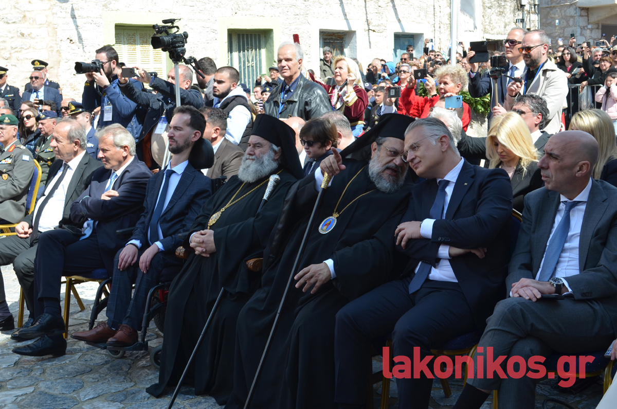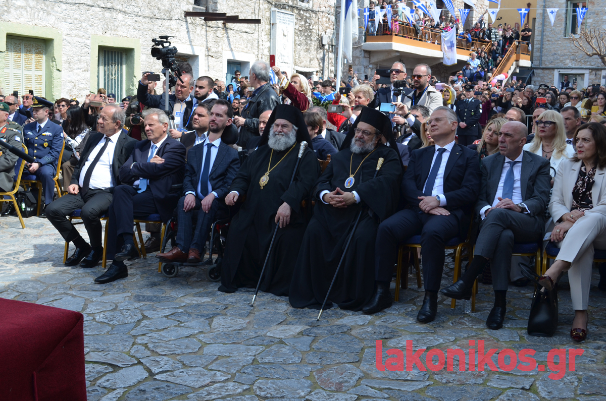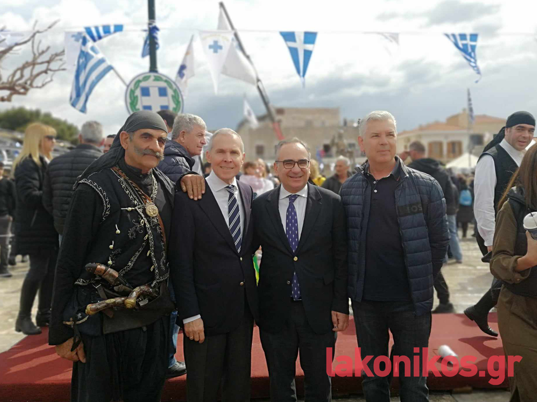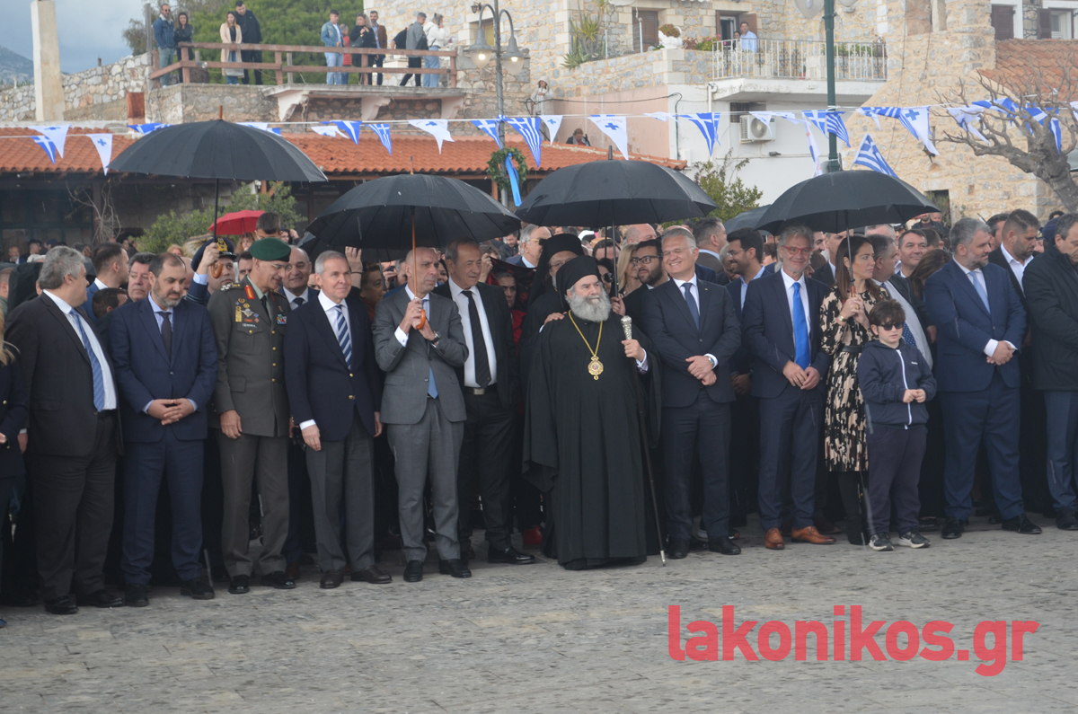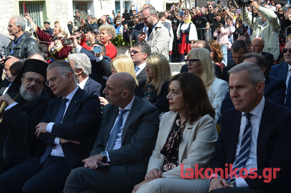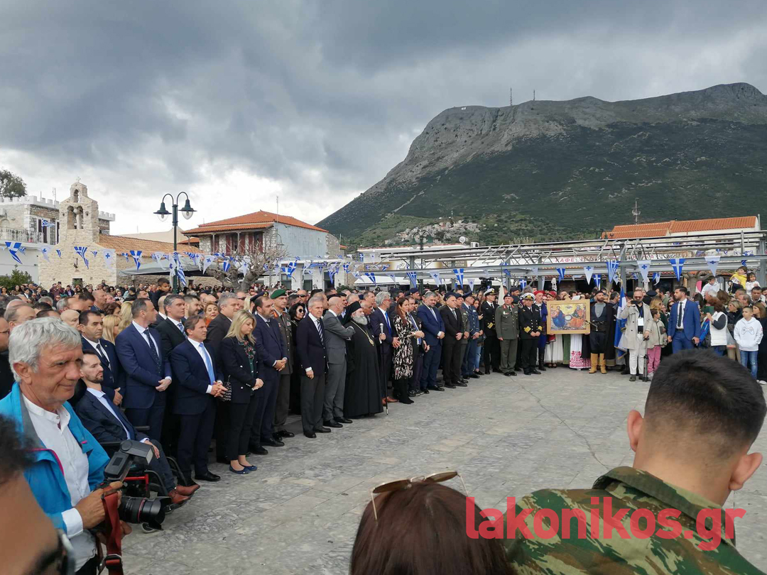 Από πλευράς του, ο περιφερειάρχης Πελοποννήσου, Δημήτρης Πτωχός, τόνισε «τη δίψα για ελεύθερο και ανεξάρτητο αέρα που ένωσε τους Μανιάτες» και έστειλε το μήνυμα πως «η κοινή θέληση πρέπει να ενώνει σήμερα και εμάς. Θέληση για συνεργασία. Θέληση για αλληλεγγύη. Θέληση για πρόοδο και εξέλιξη. Θέληση για να ανεβάζουμε κάθε μέρα τη πατρίδα μας ψηλότερα».